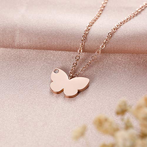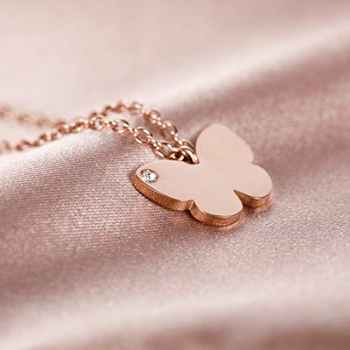 • Dainty and comfortable: Fashion cute butterfly pendant necklace. Special and elegant design for all time. shiny cubic zirconia diamond inlaid. Comfortable to wear and increase your charm. Easy to match your fashion.