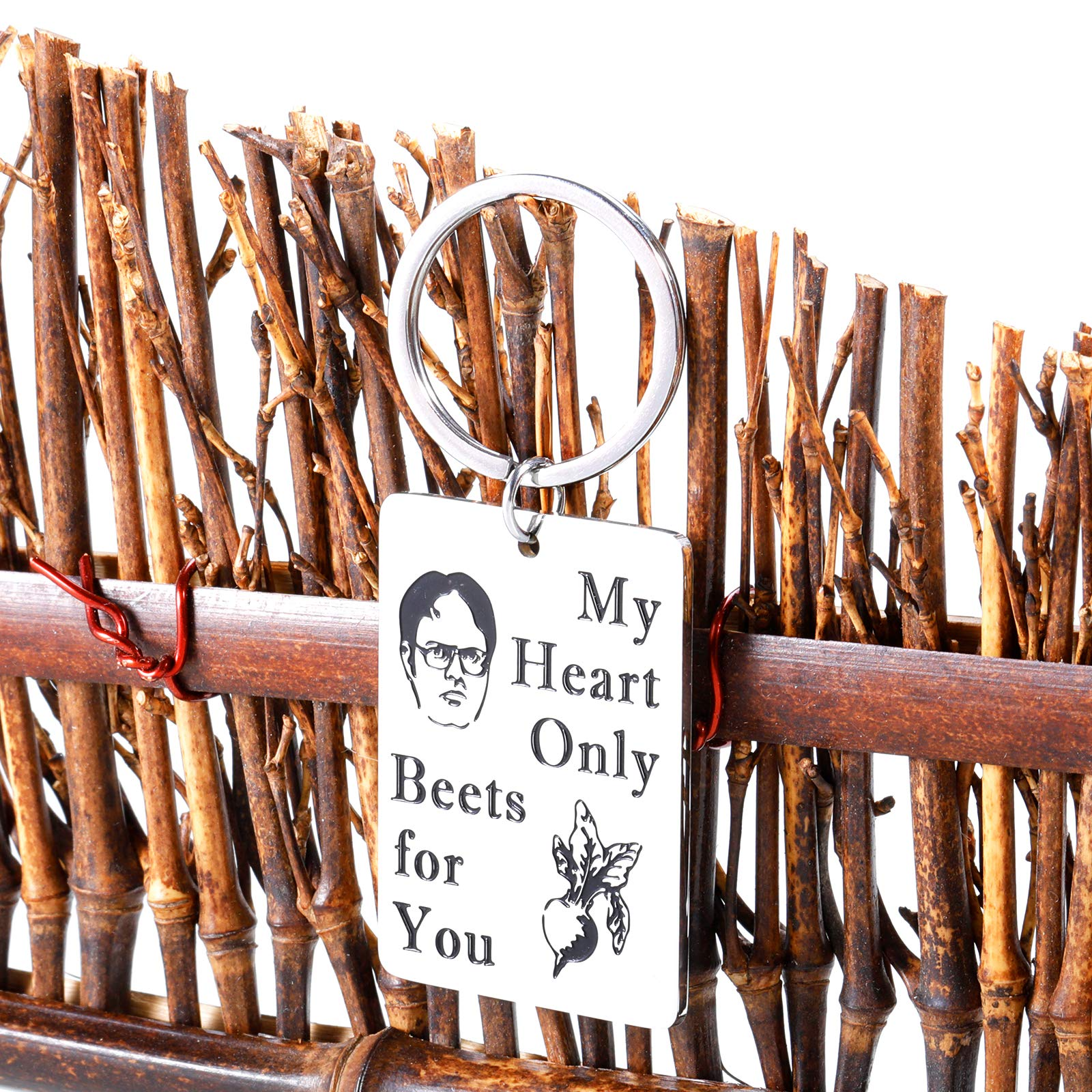 Christmas Gifts Funny Valentines Day Keychain Office TV Show Gifts for Boyfriend Wife from Girlfriend Husband Anniversary Birthday Gift for Fans Women Men My Heart Only Beets for You Christmas Couple Present Stocking Stuffers