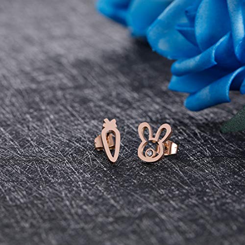 Cute Rabbit and Carrot Stud Earrings Fashion Delicate Cubic Zirconia Stud Dainty Animal Minimalist Stainless Steel Rose Gold Earrings Jewelry Christmas Gifs for Women