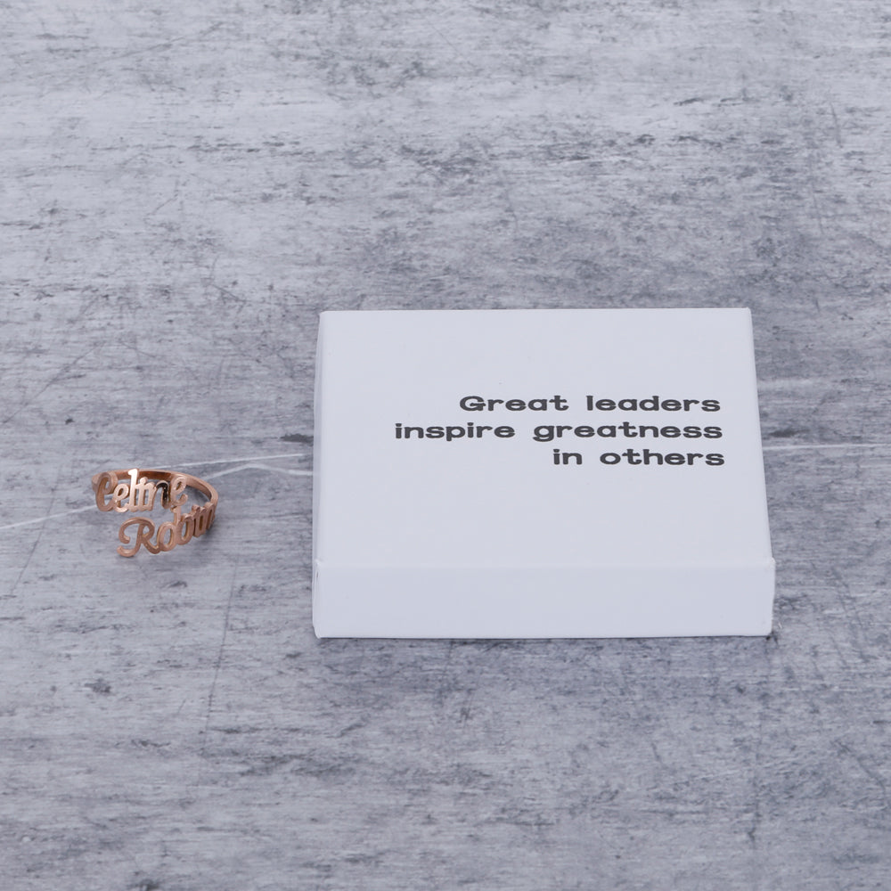 Great leaders inspire greatness in others Double Name Ring Two Name Ring Statement Ring Custom Name Ring with Any Names Mother Daughter Ring Gift