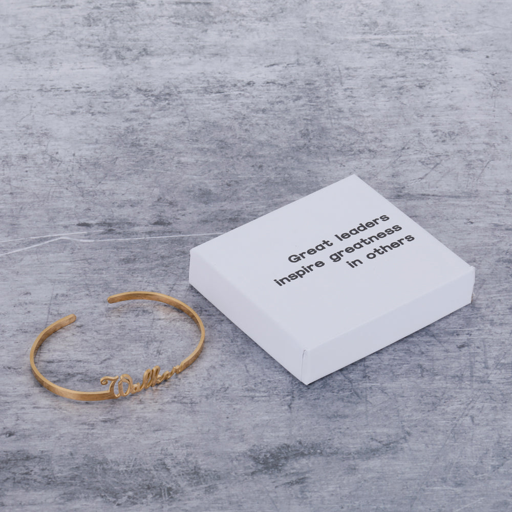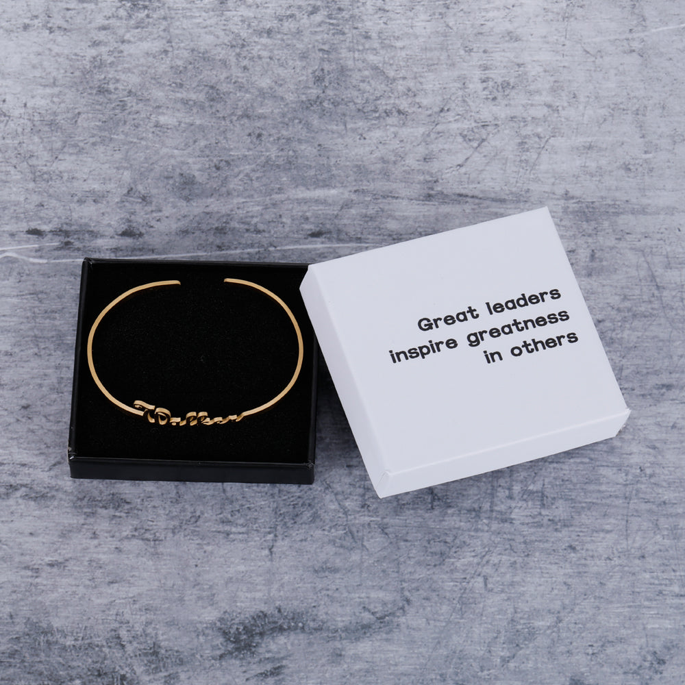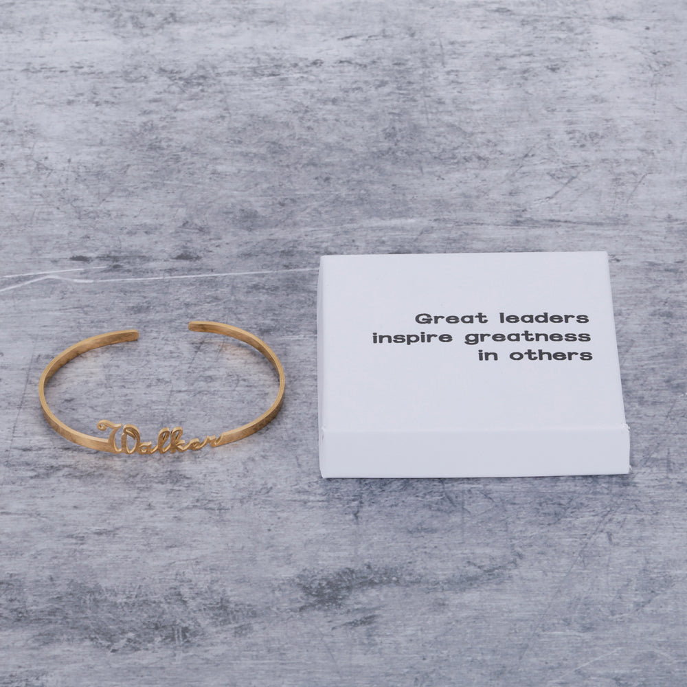 Great leaders inspire greatness in others Personalized Name Bar Bracelet, Stainless Steel Custom Engraved Inspirational Cuff Bangle