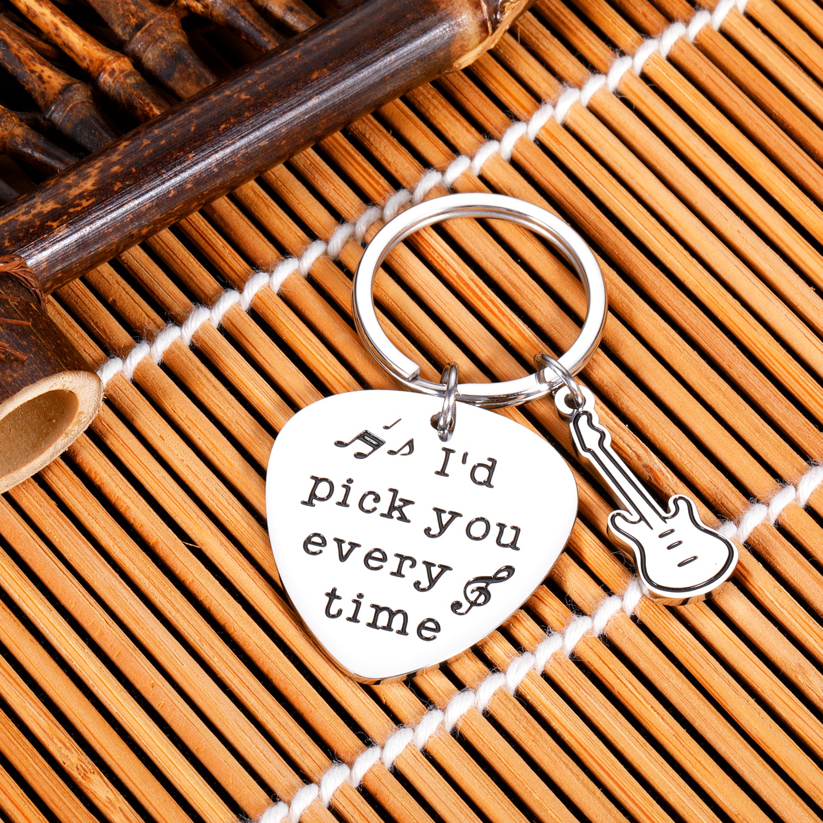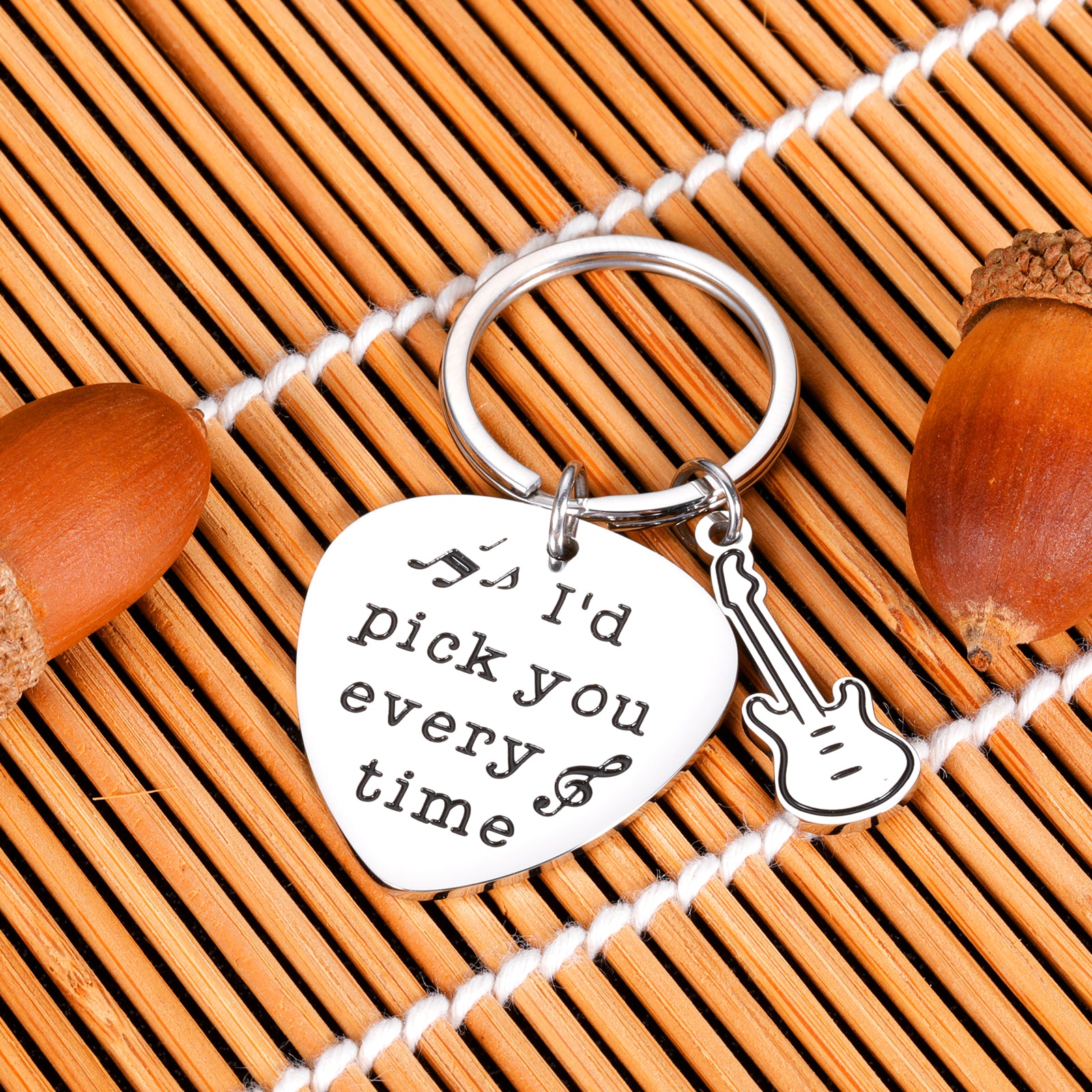 Guitar Pick Gifts for Music Lover Keychain for Music Stuff Musician Unique Fathers’ Day Gift for Boyfriend Husband Son Dad I’d Pick You Guitar Accessories Present for Christmas Valentines Day