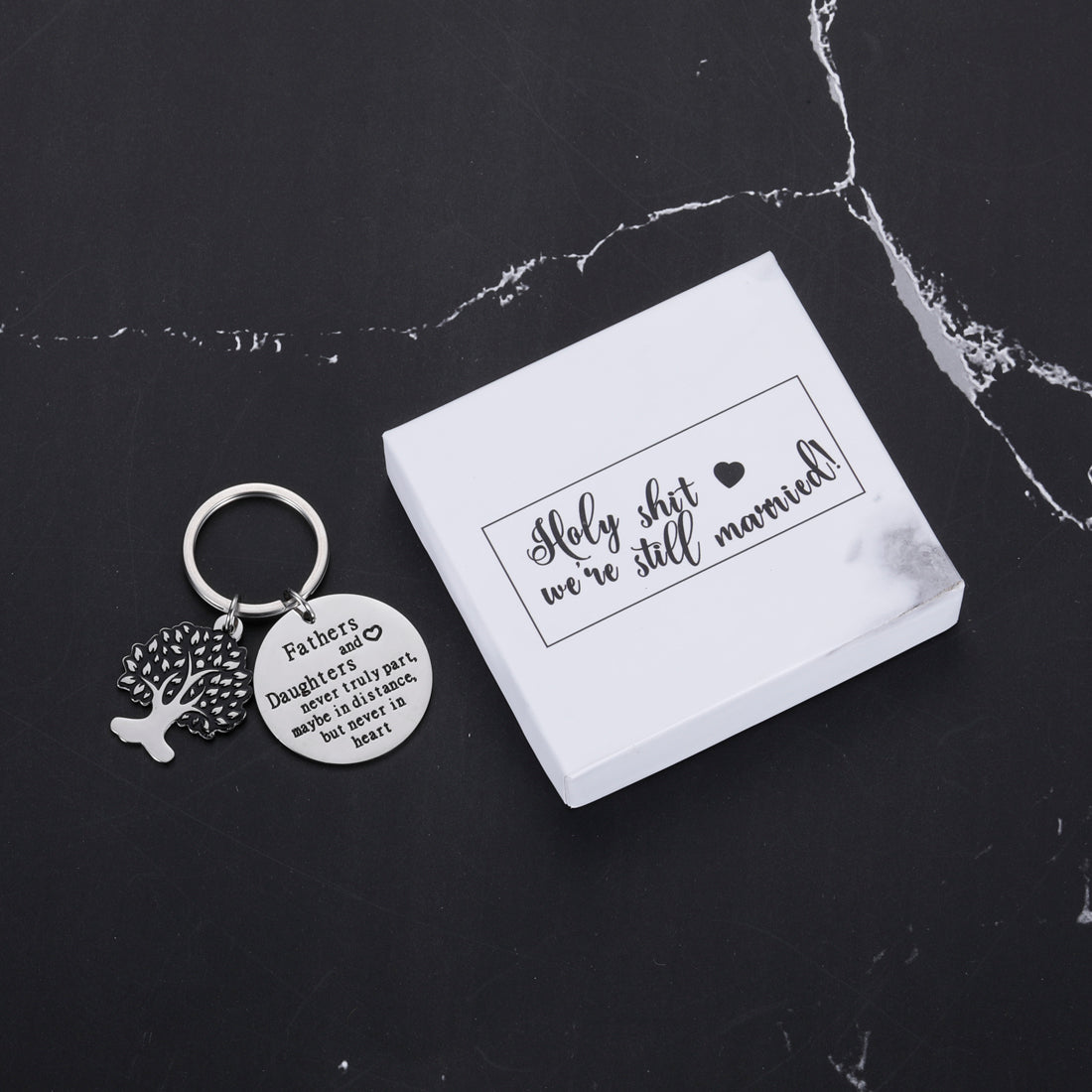 Holy shit we’re still married Fathers Day Gifts for Dad Keychain Birthday Christmas Gifts for Daddy Step Dad from Daughter Kids