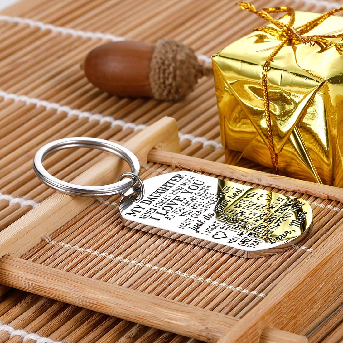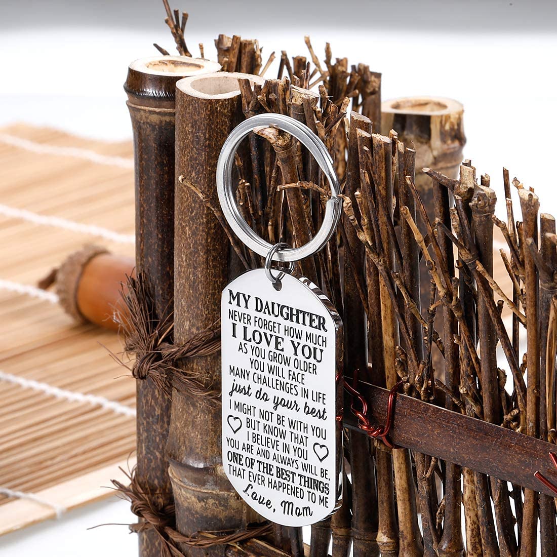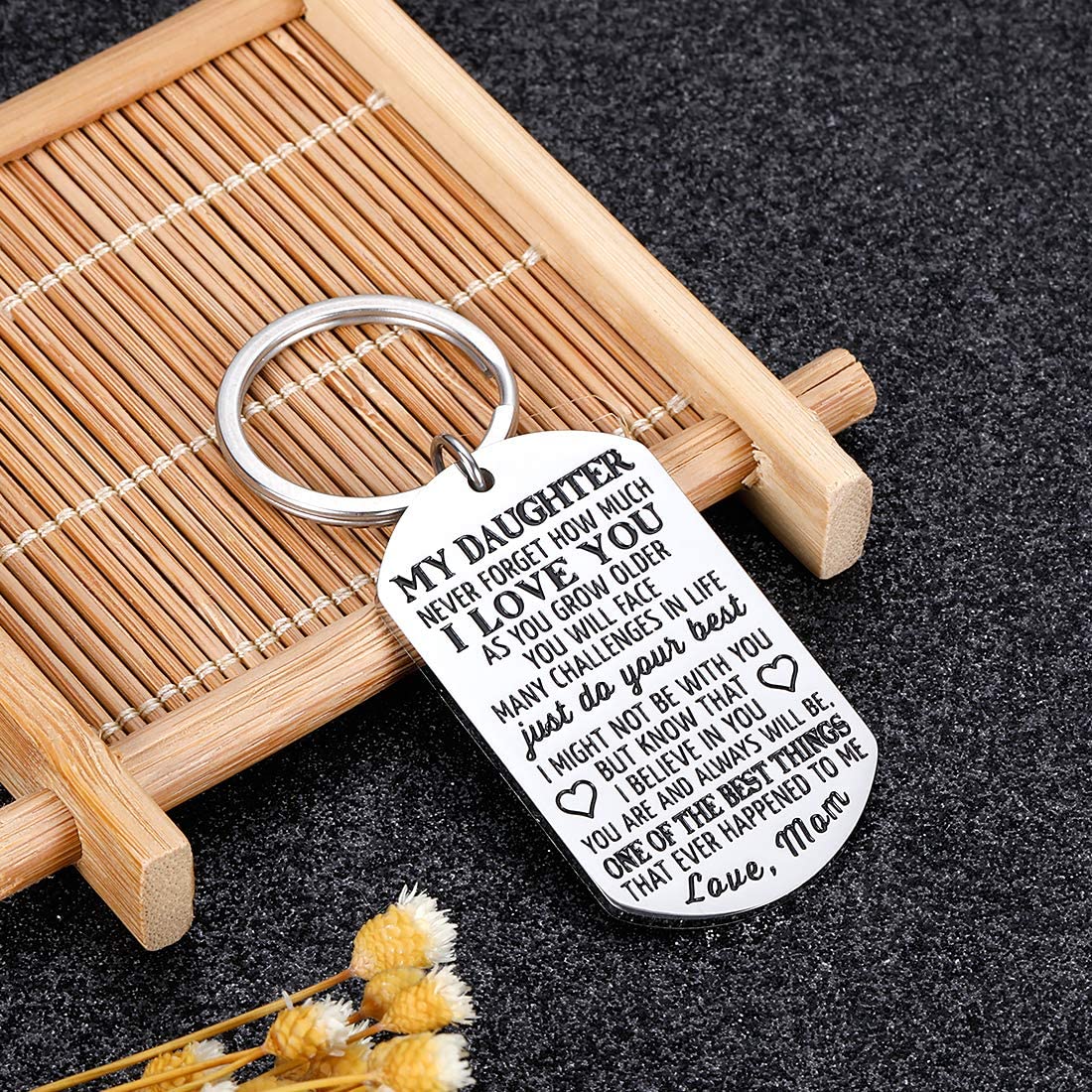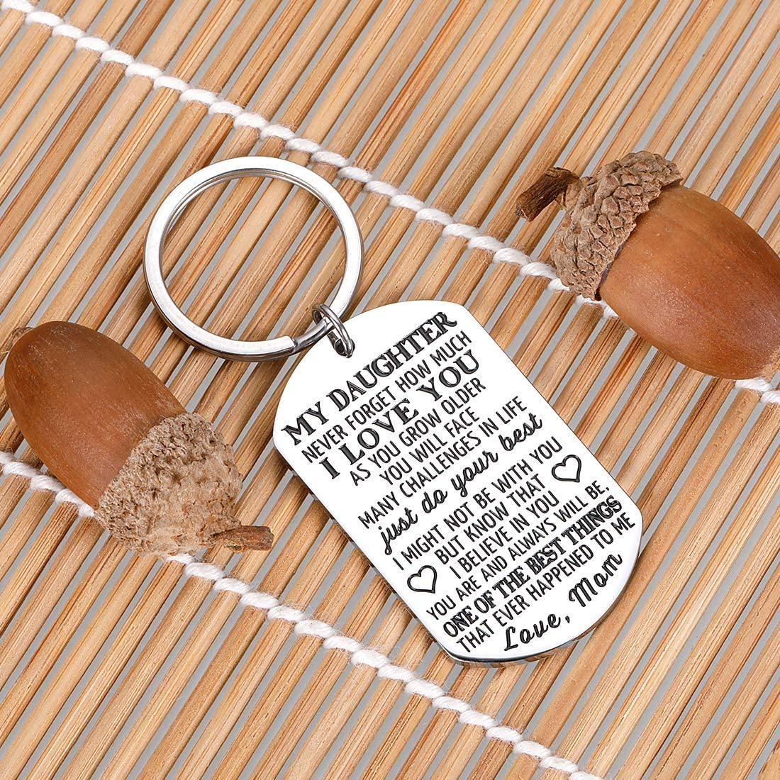 Daughter Girls Keychain Gifts from Mom Mother to Step Daughter Christmas Birthday Graduation Inspirational Keychain Present Sweet 16 18 21 Never Forget How Much I Love You