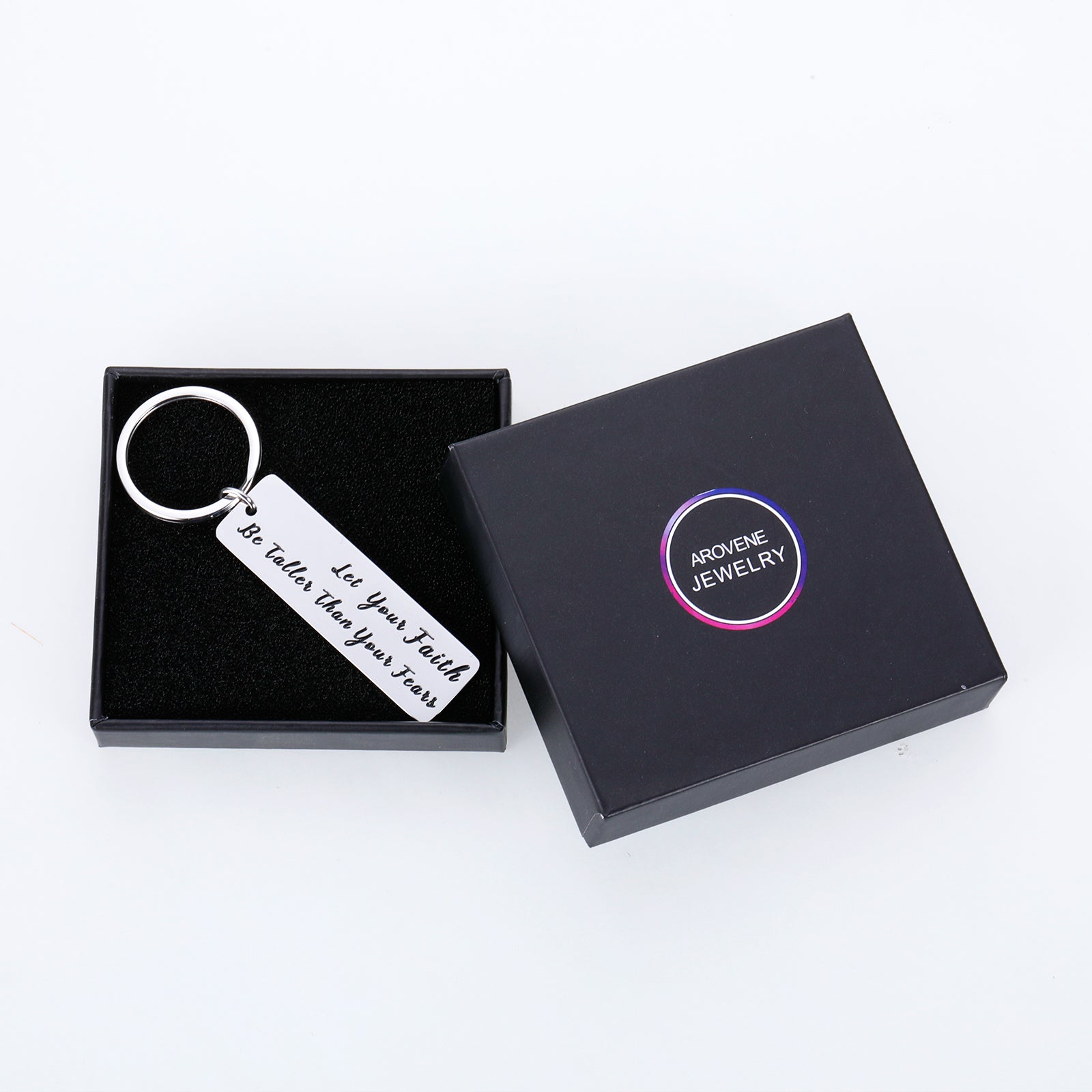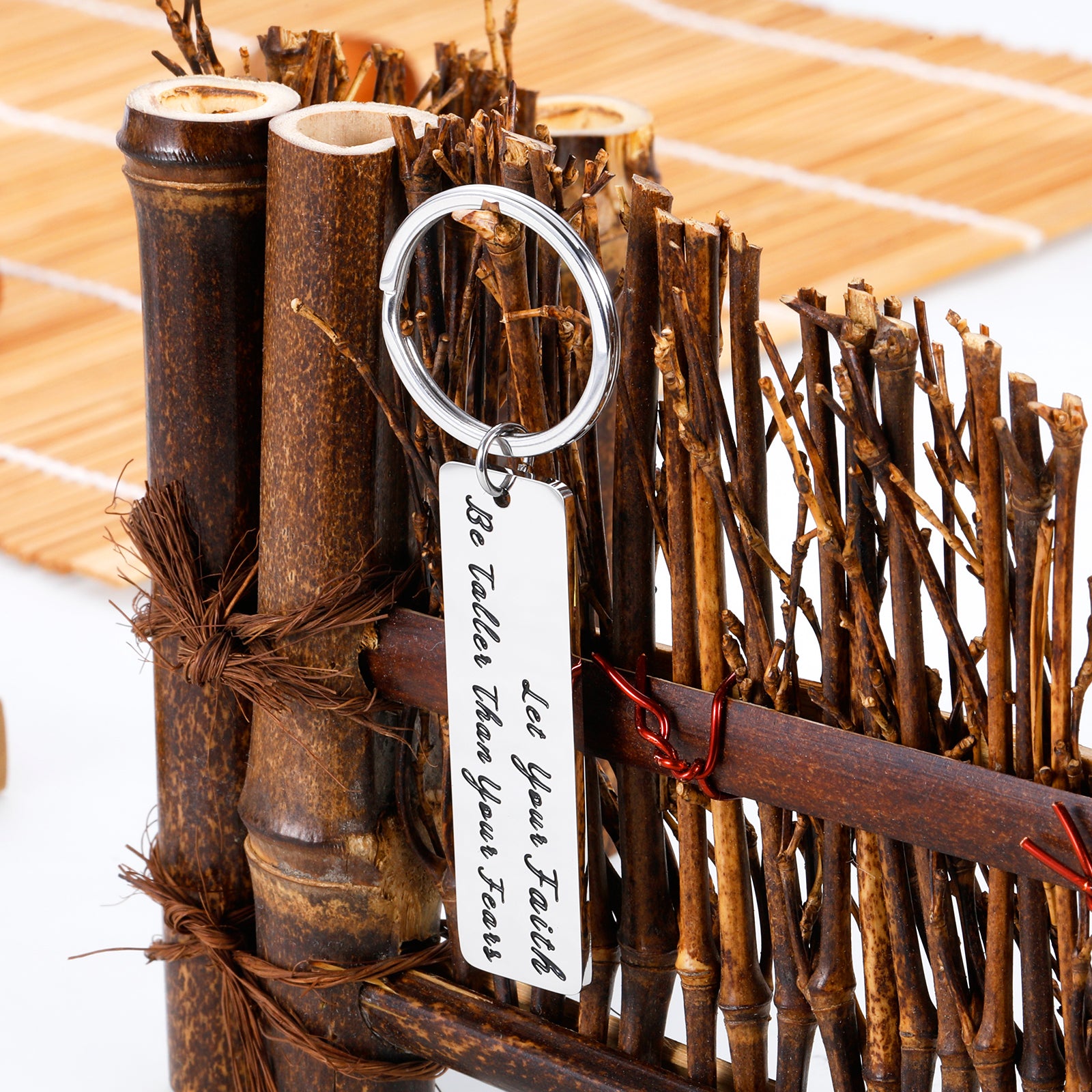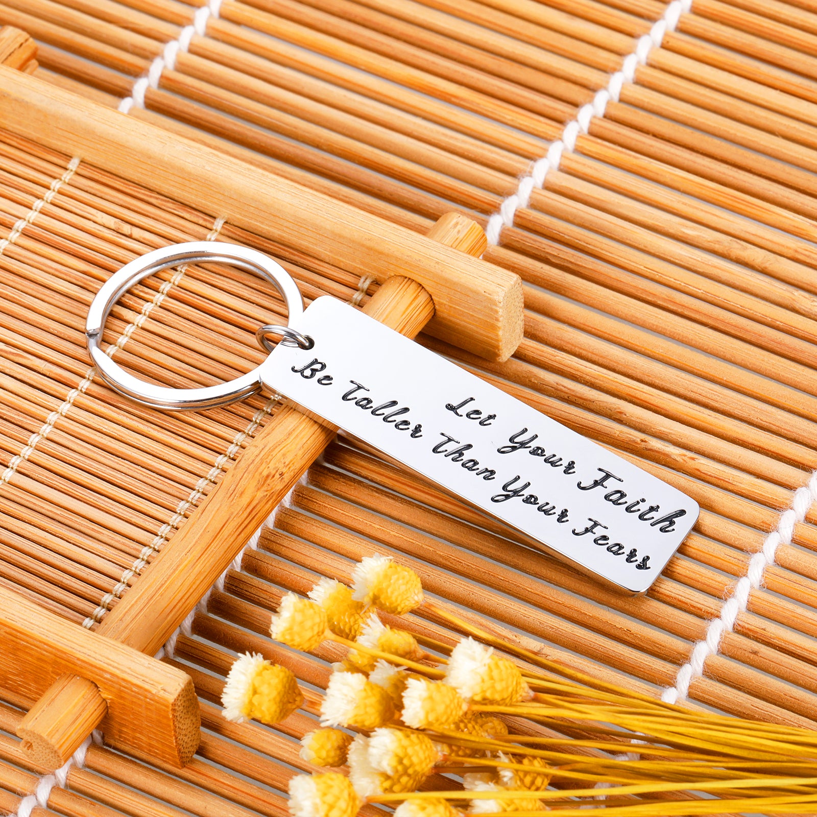 【Best Friend Keychain for Women Men】Inspirational Gift Keychain engraved meaningful words "Let Your Faith Be Taller Than Your Fears", so that everyone who receives the gift knows your love and encouragement for him. It is best friends gift to encourage someone who is in trouble or struggling for something hard