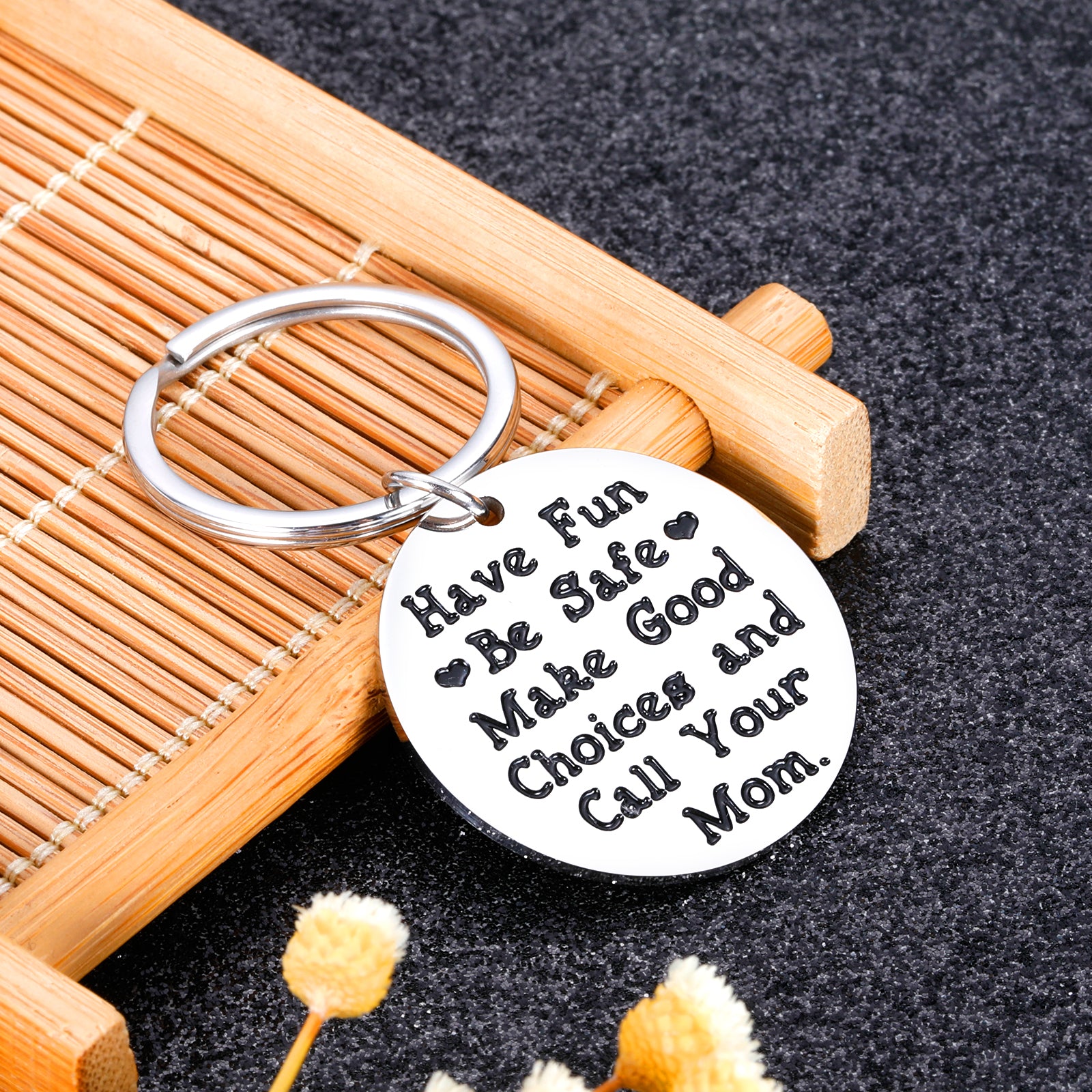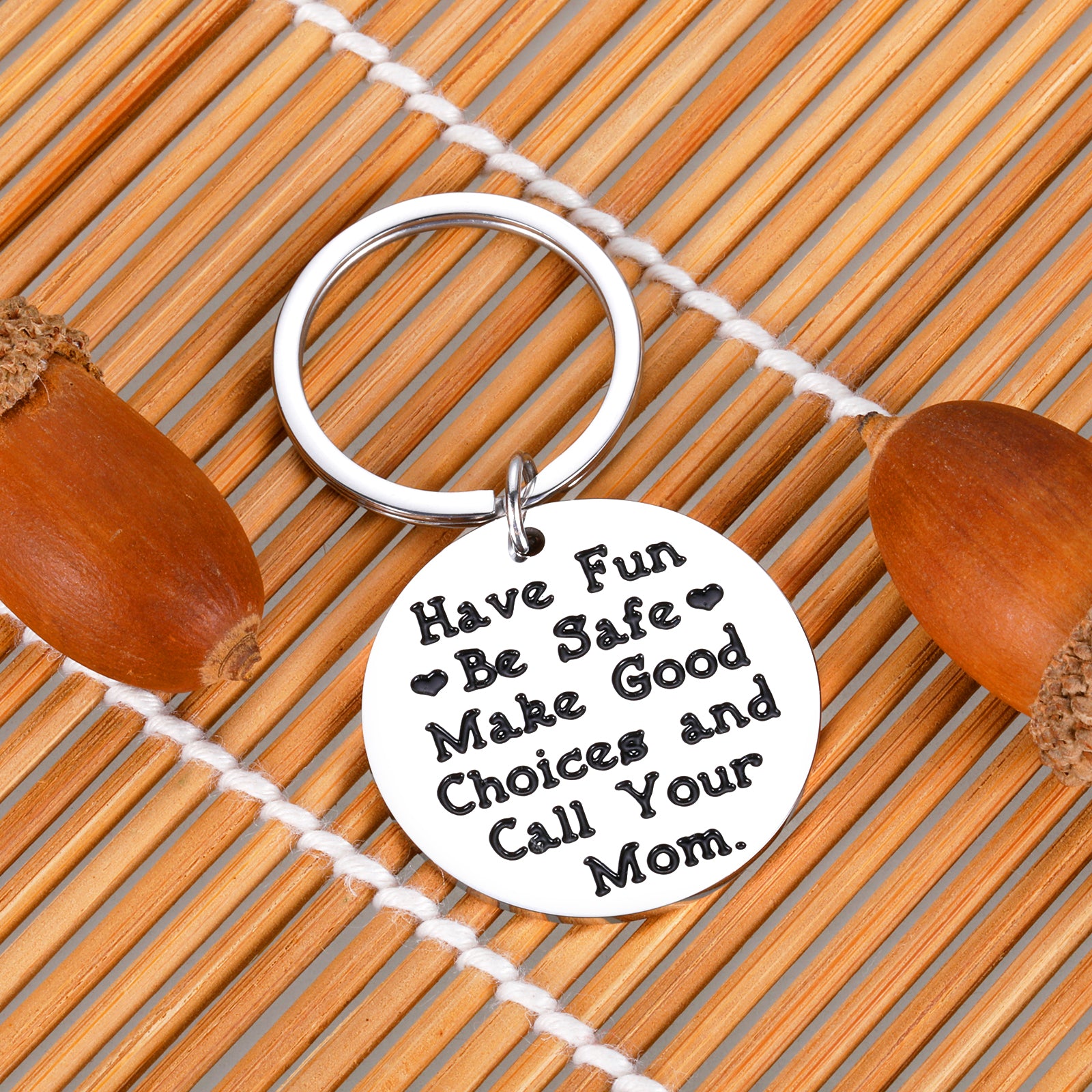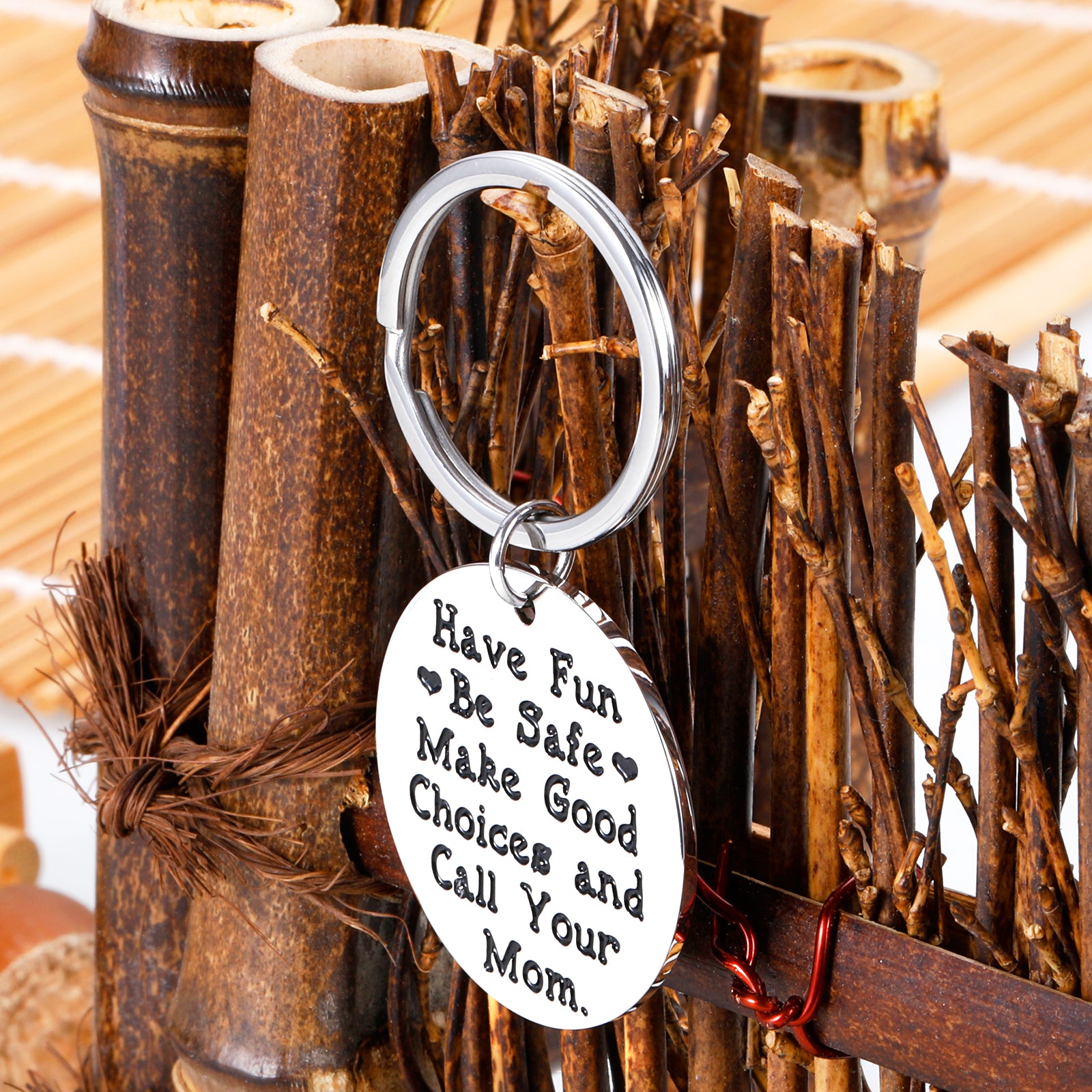 【Birthday Gift for Daughter Son Adult】"Have Fun, Be safe, Make Good Choice and Call Your Mom" is engraved on this love keyring. It is a great Daughter Son keychain to inspire your children to enjoy themselves, always be safe and especially anything just Call Your Mom in the future. A funny and useful gift for your kids birthday to let them know how much you miss them.