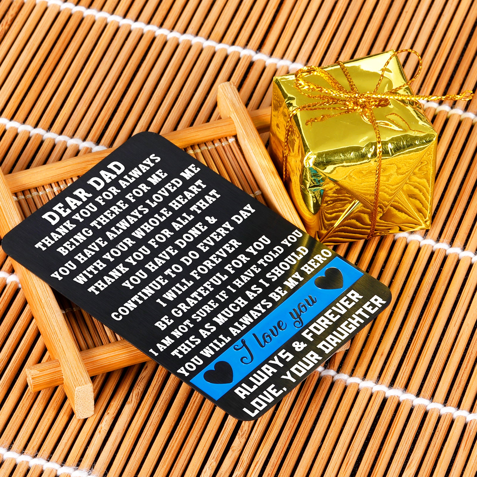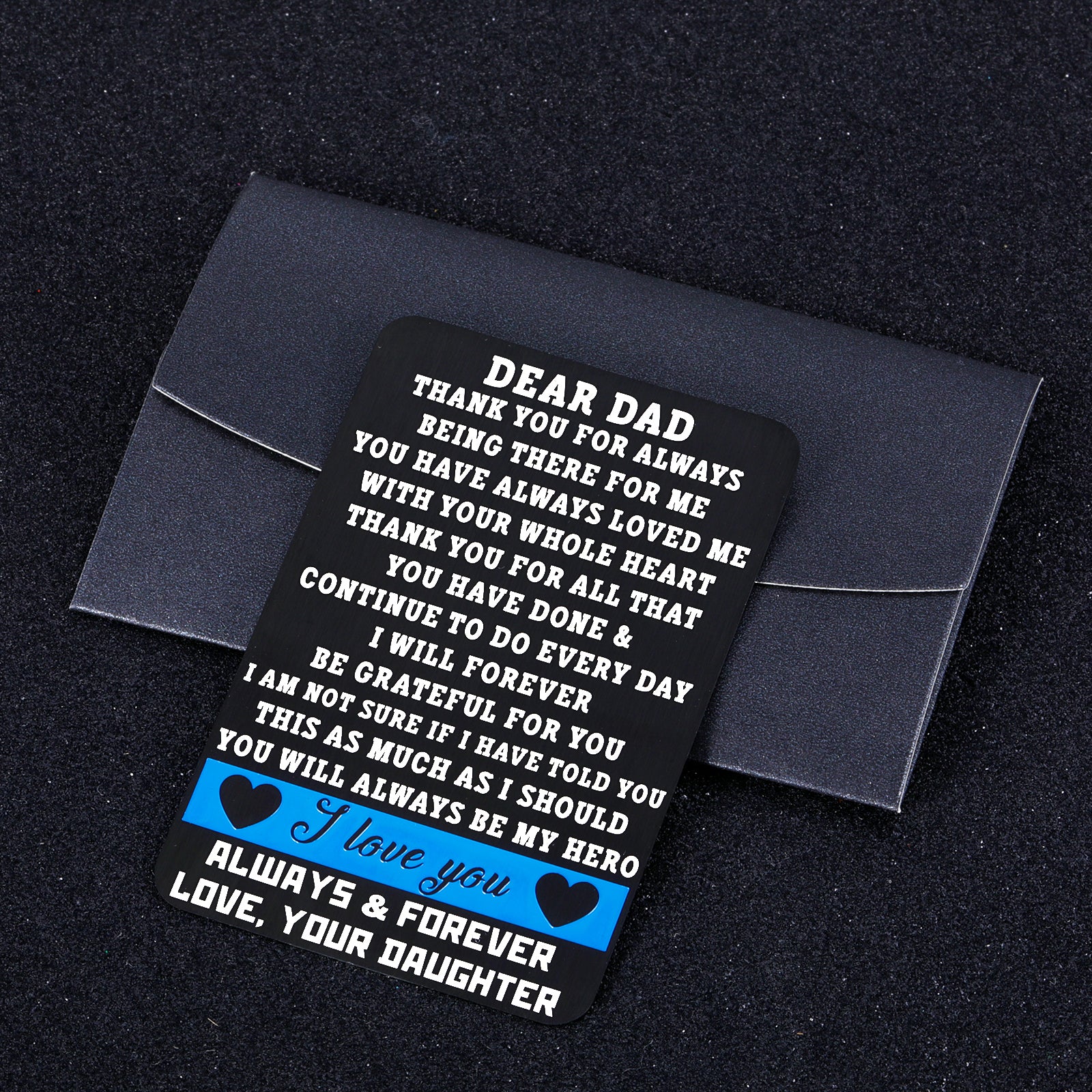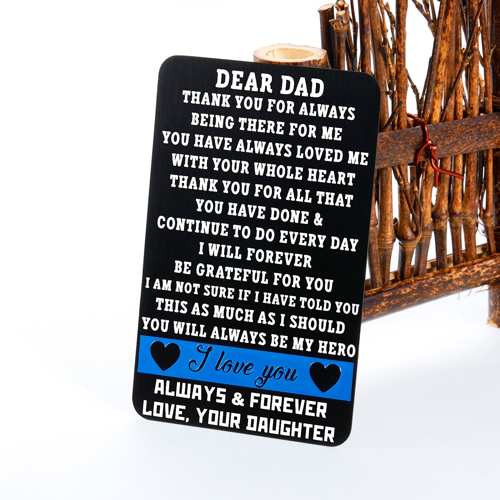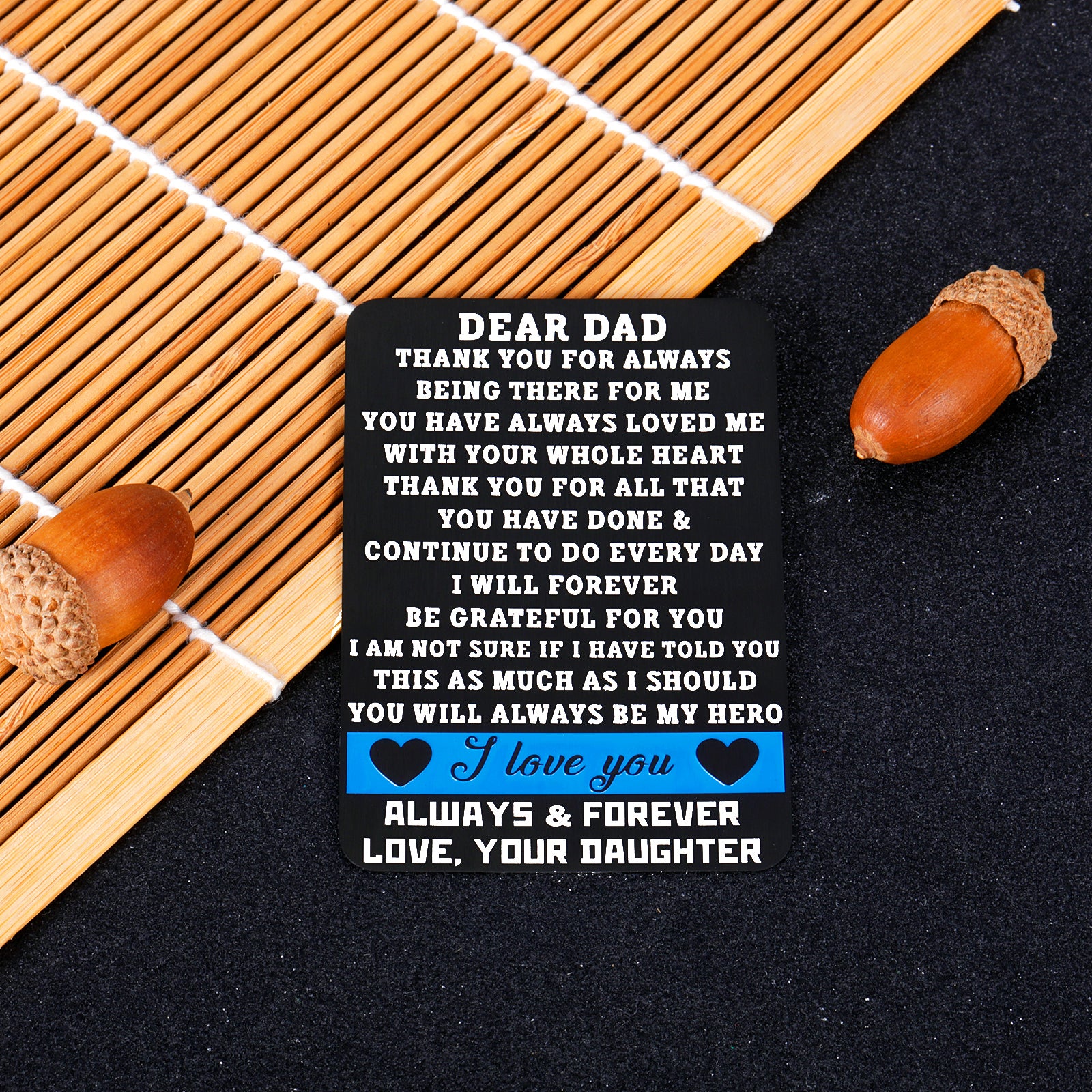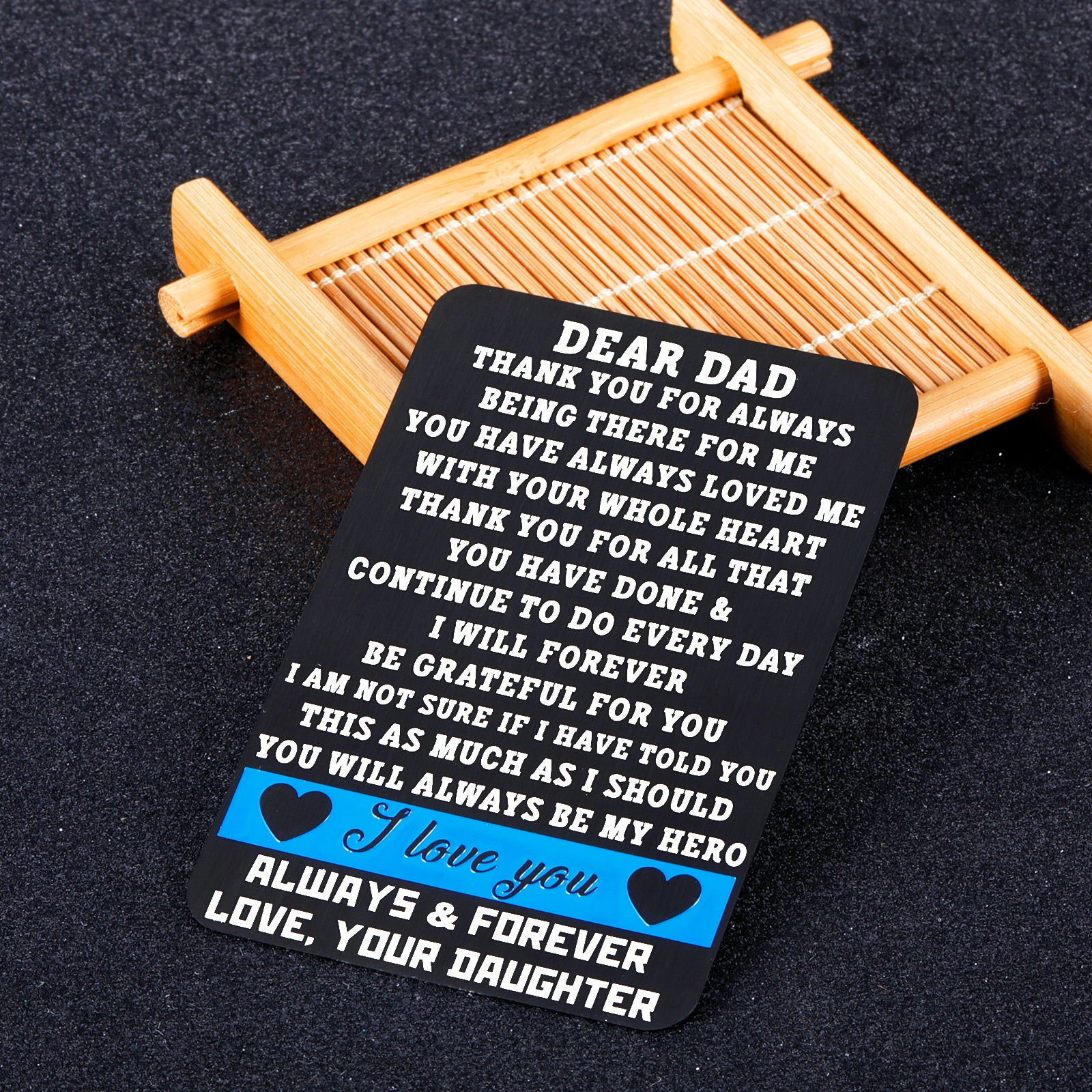• 【Best Fathers Day Gifts】“DEAR DAD, THANK YOU FOR ALWAYS BEING THERE FOR ME.YOU HACE ALWAYS LOVED ME WITH YOUR WHOLE HEART. THANK YOU FOR ALL THAT YOU HAVE DONE & CONTINUE TO DO EVERYDAY I WILL FOREVER BE GRATFUL FOR YOU IAM NOT SURE IF I HAVE TOLD YOU THIS AS MUCH AS I SHOULD YOU WILL ALWAYS BE MY HERO. I LOVE YOU ALWAYS AND FOREVER,LOVE,YOUR DAUGTHER.”Engraved words won’t fade or wear off. The unique gift will be appreciated by your daddy for many years to come.