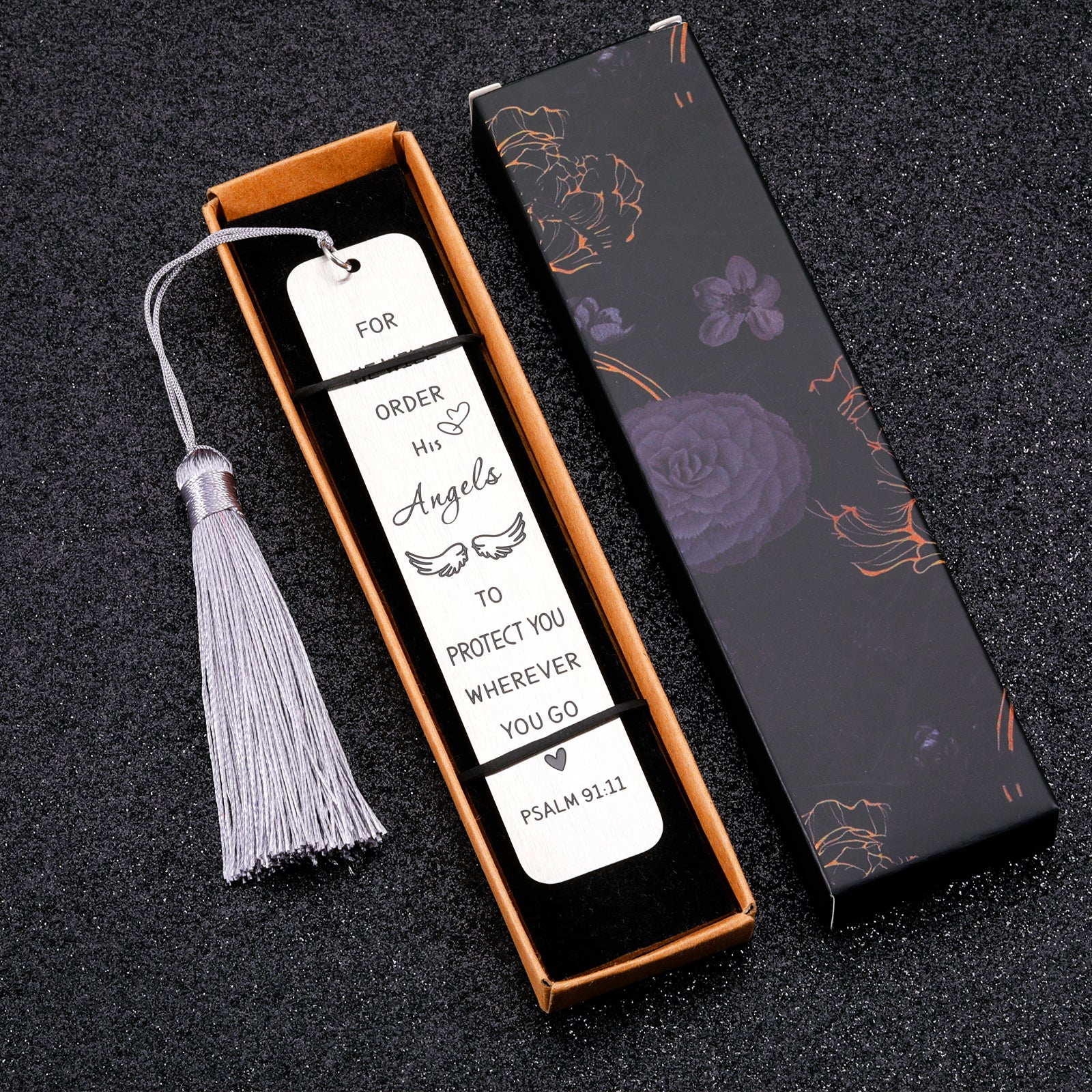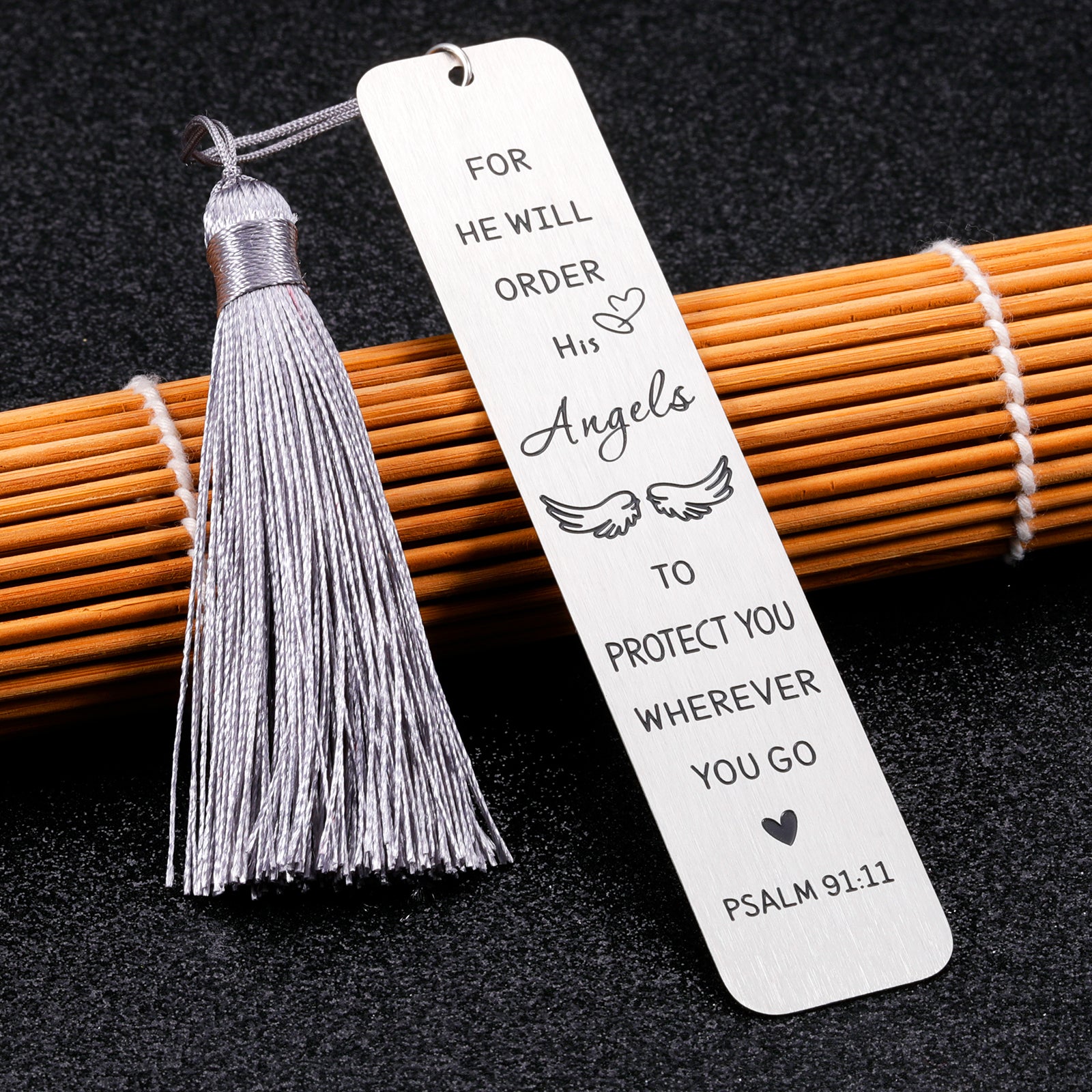 - Bible Quotes Gift Bookmark for Her: Features the encouraging bible verses" He Will Order His Angels to Protect You Wherever You Go Psalm 91:11". An Inspirational religious bookmark with a tassel to mark the page makes a nice gift for church members, ladies, daughter, mom, and any family member, coworker who is a book lover, bookworm, and book obsessed. Makes a nice gift for church members, women, ladies, friends, BFF, book lovers, family members, daughter, mom, and anyone who enjoys reading