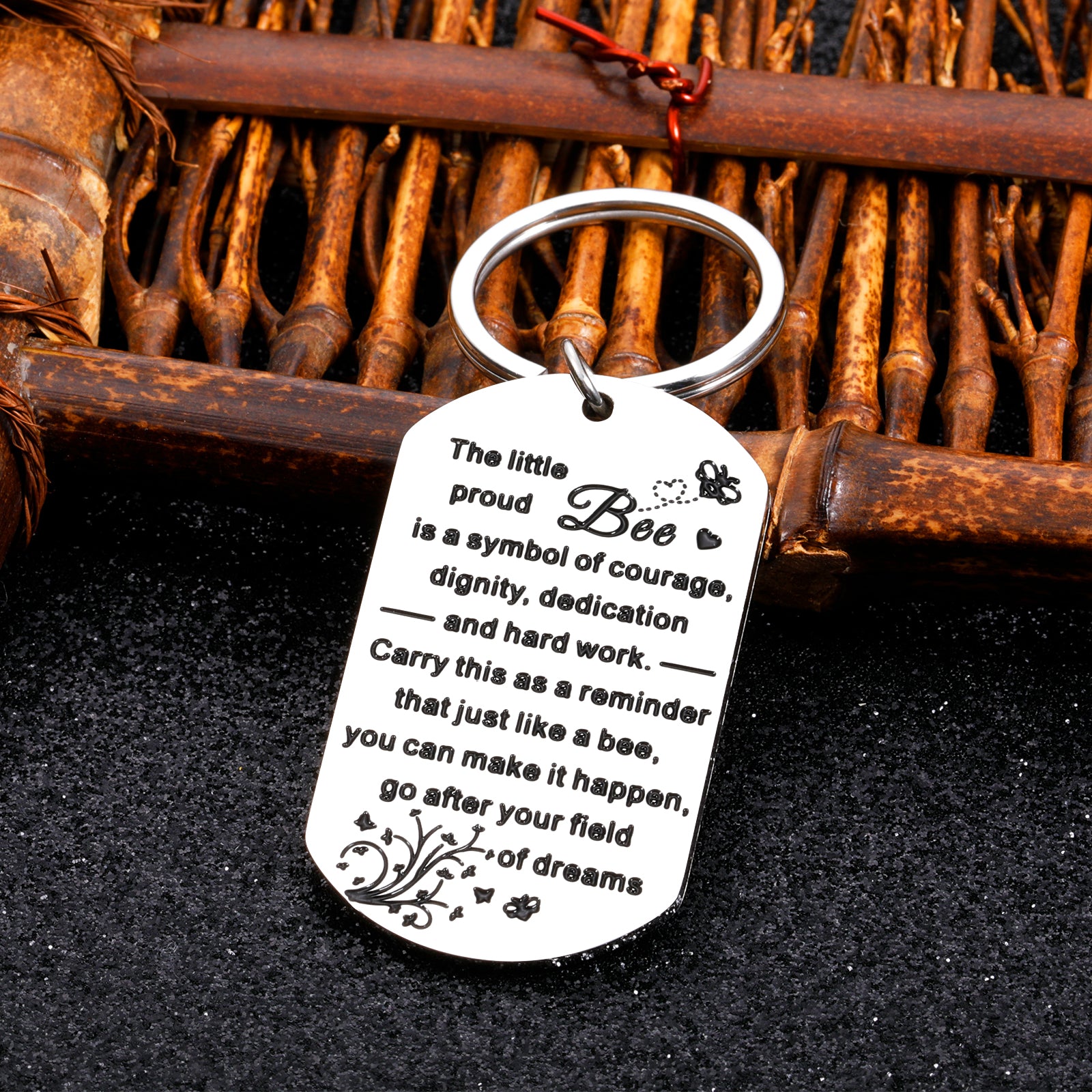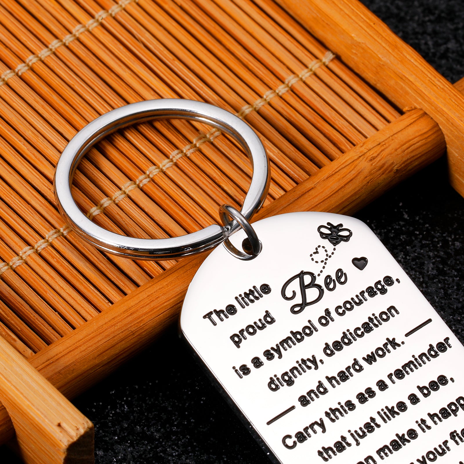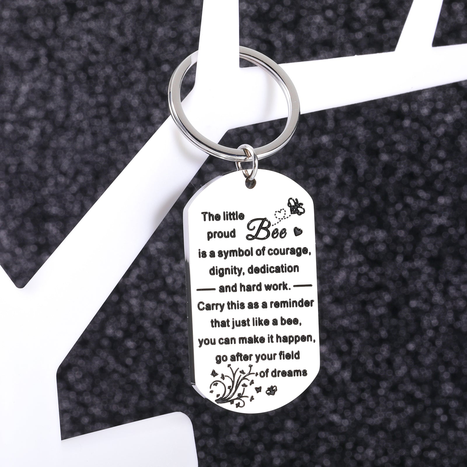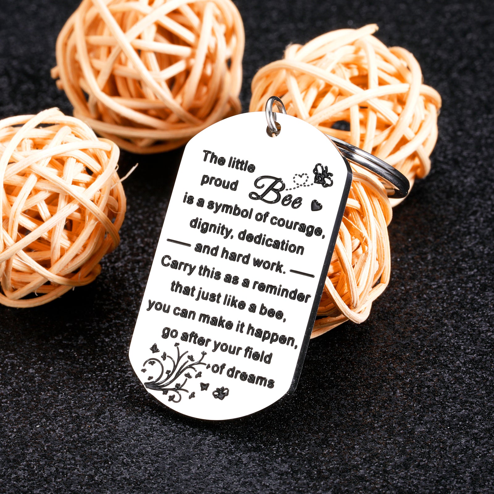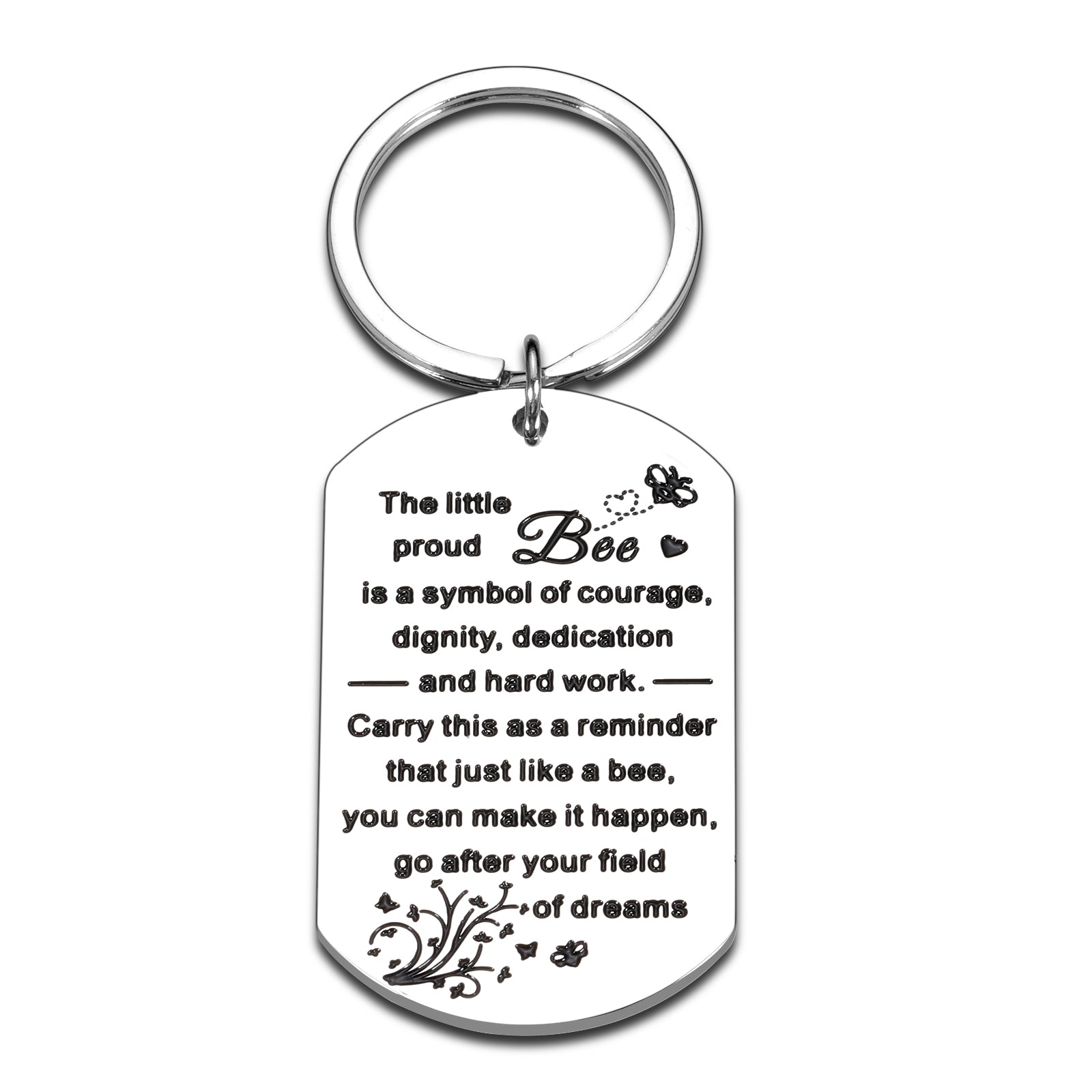 • 🍀【Bee Gifts for Women Men】The keyring engraved with meaningful words:"The little proud bee is a symbol of courage, dignity, dedication and hard work carry this as a reminder that just like a bee you can make it happen go after your field of dreams." These warm hearted words mainly mean gratitude and appreciation which will express your truly felling to the one you love.It's a great gift for her/him on Christmas, stocking stuffers,Xmas, birthday, new years, , Halloween, or hard times