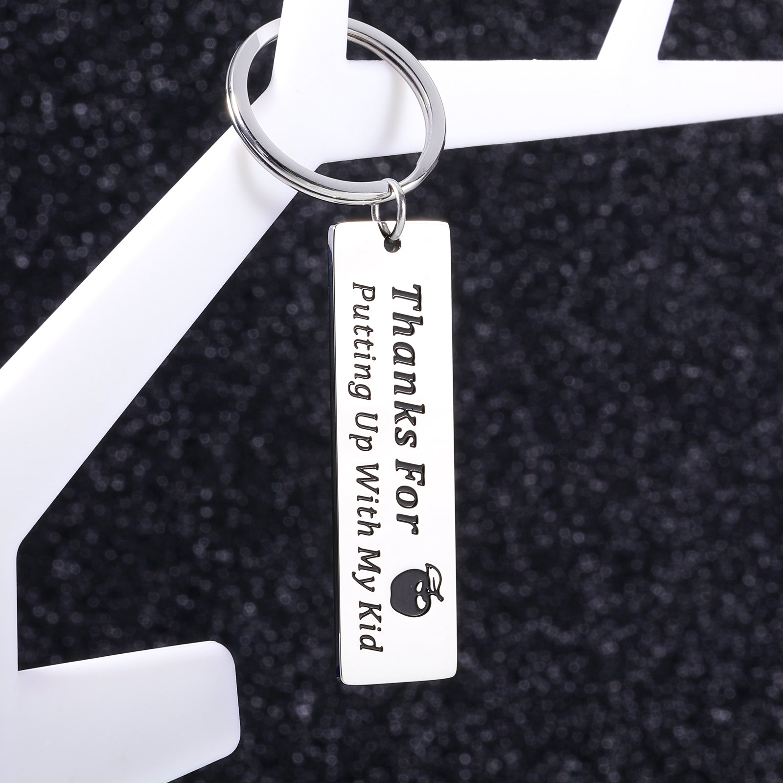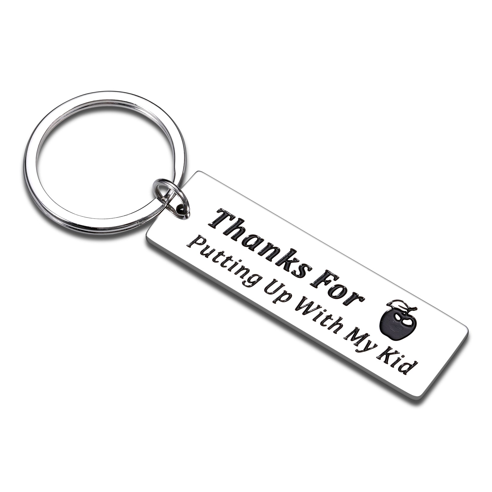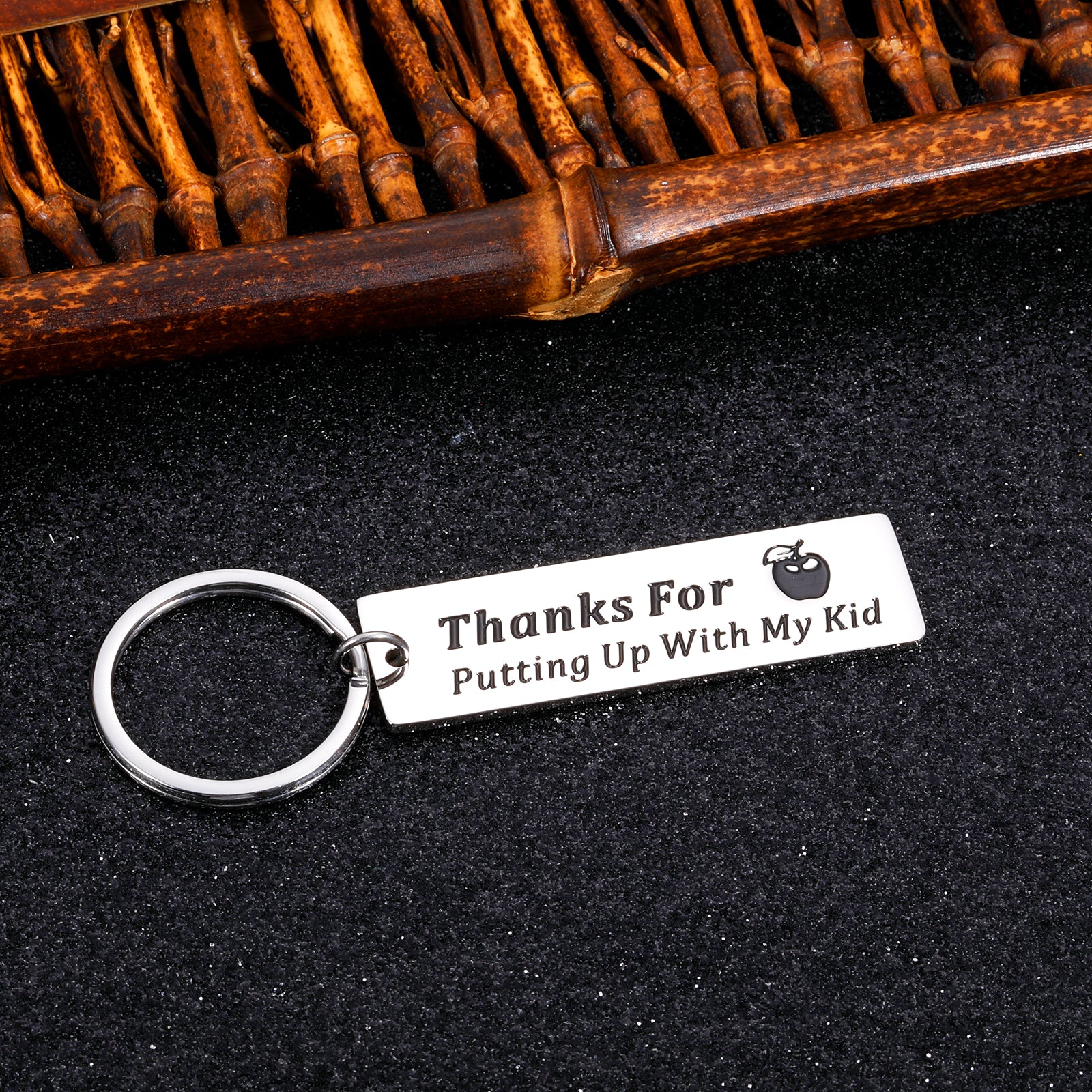 - 👩🏫👨🏫【Gifts for Teachers Coaches】It is a nice keychain with meaningful words as a nice teacher appreciation gift. The keychain is engraved with "Thanks for putting up with my kid", a fun and humorous phrase that is perfect for showing teachers and coaches that they are dedicated to guiding your child. Perfect for National Teacher Day, Teacher Appreciation Week, the end of the school year, or just because! Presenting this keychain to show sincerely thankful to them