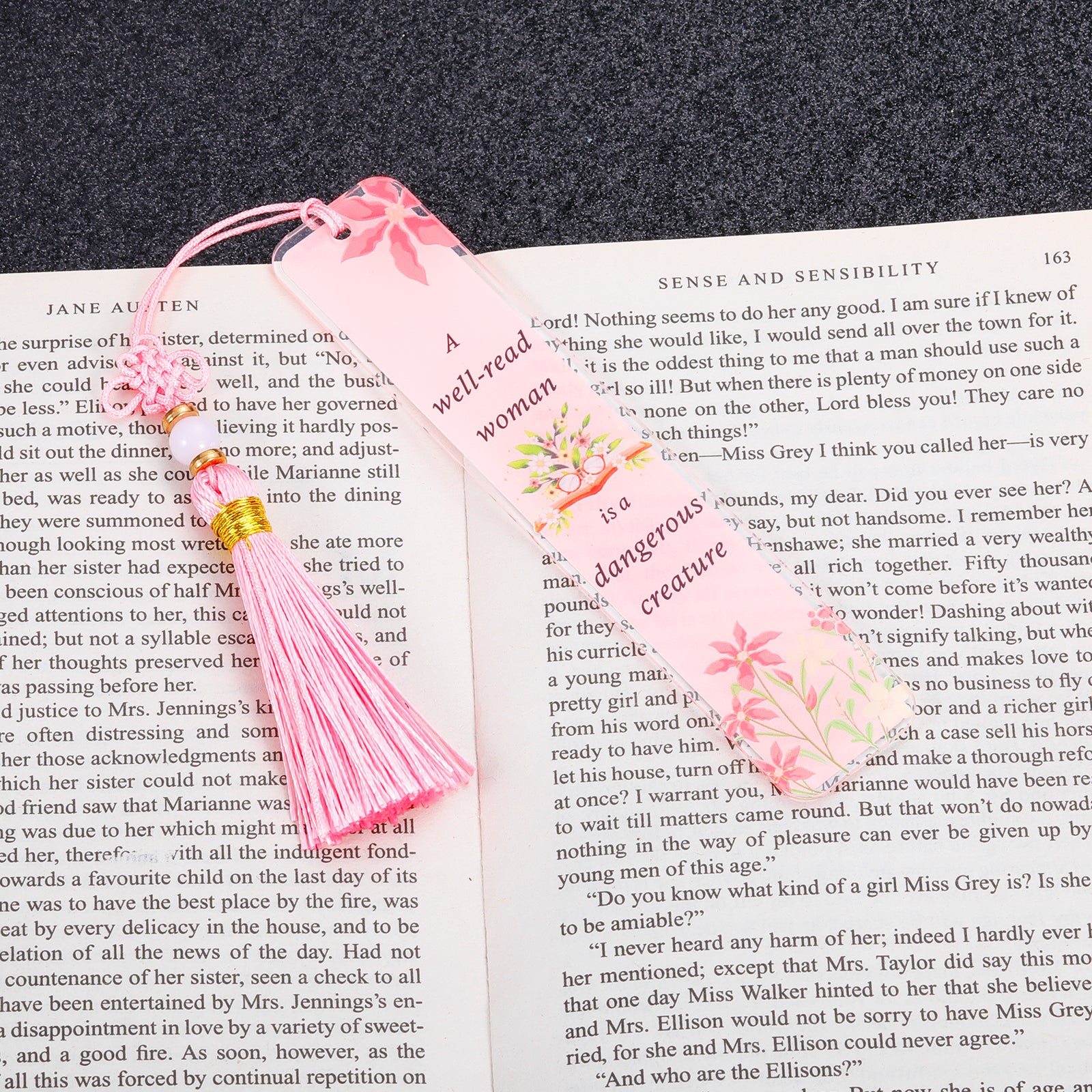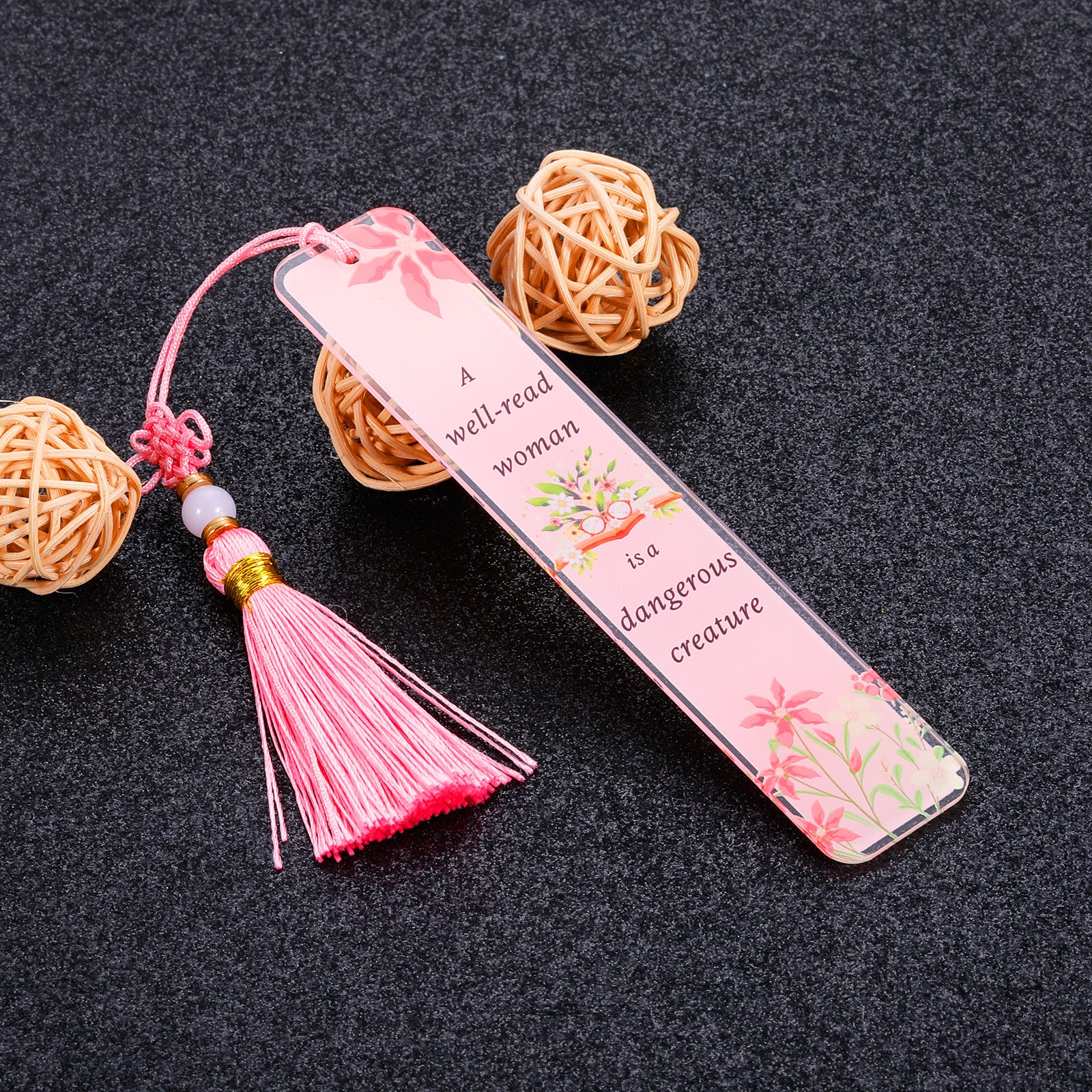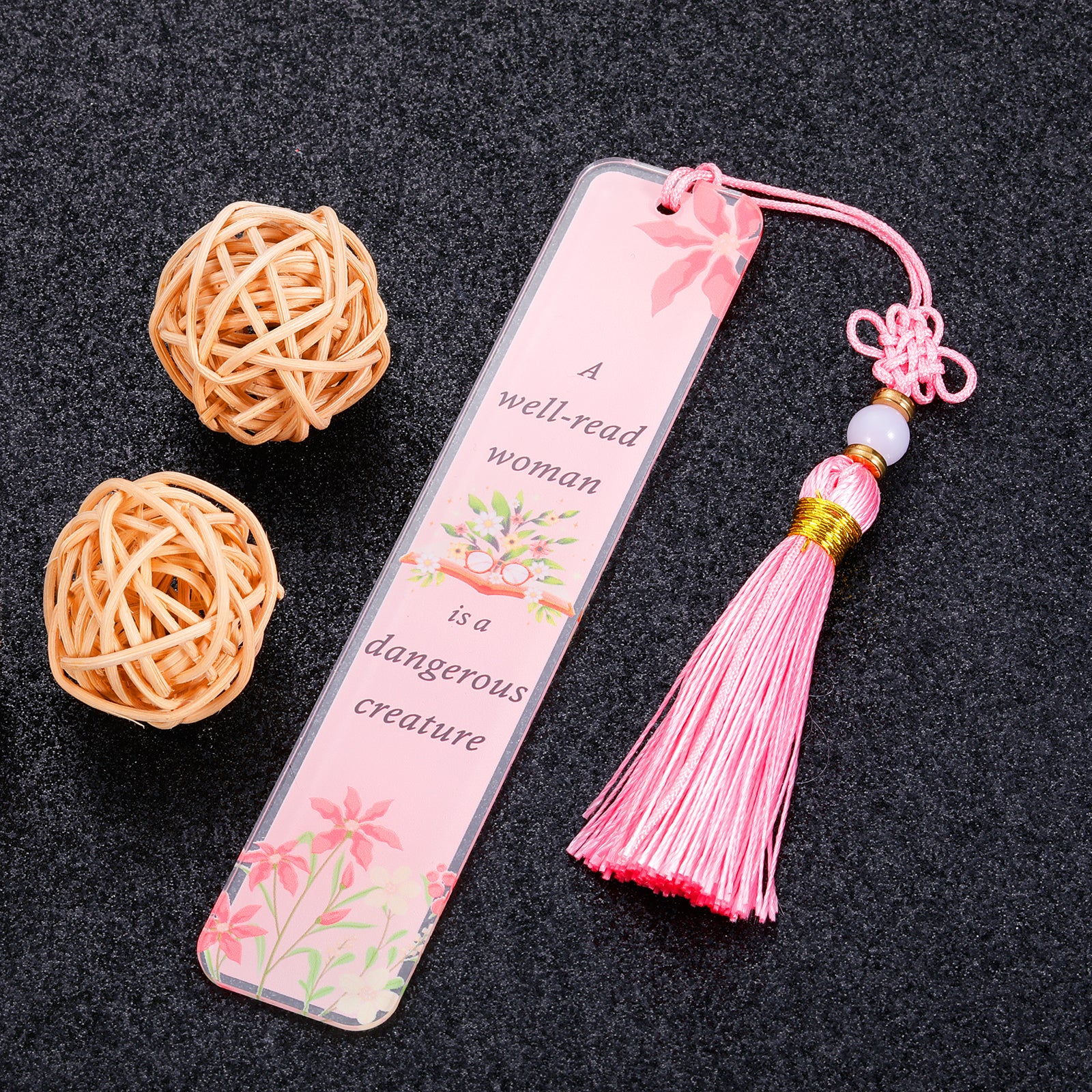 • đź”–Bookmarks for Book Lovers-- Best women's stocking stuffers bookmark for wife, grandma, girlfriend, friends, and sisters. The cute acrylic bookmark features the classic quote from Lisa Kleypas: “A well-read woman is a dangerous creature.” Cool book lovers gifts bookmark with pink tassels. Gifts for mom from daughter, daughter gift from mom, Book markers for teacher appreciation gifts, Christmas gifts for girlfriends, bookmarks for teens, encouragement gifts for women, kids bookmarks
