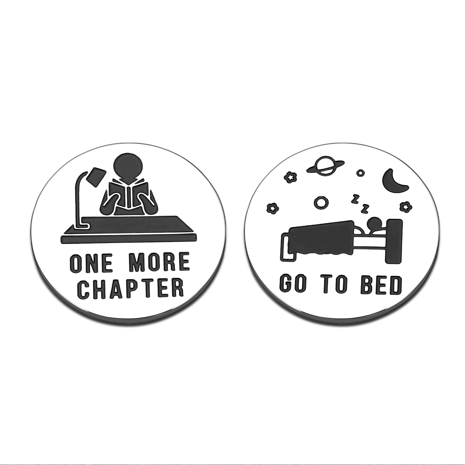 Funny Christmas Gifts--Double sided engraving, Front “One More Chapter” and Back “Go To Bed” Super cute and fun, funny stocking stuffers for women, meaningful gifts for friends, book lovers, family, students, teachers, sisters, brothers, coworkers, or anyone who loves reading books. Cool book lovers gifts for mom from daughter, gifts for book lovers women, cool things for college students. This funny decision coin is suitable for someone who is addicted to reading and will burn into laughter.