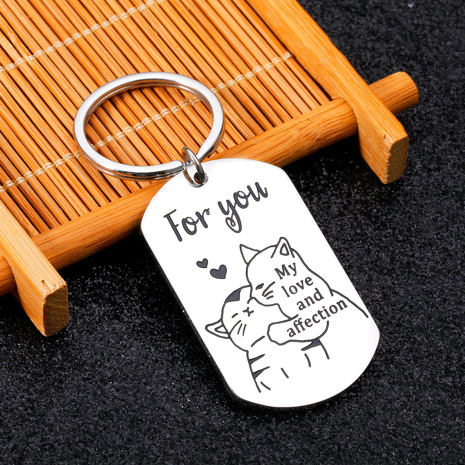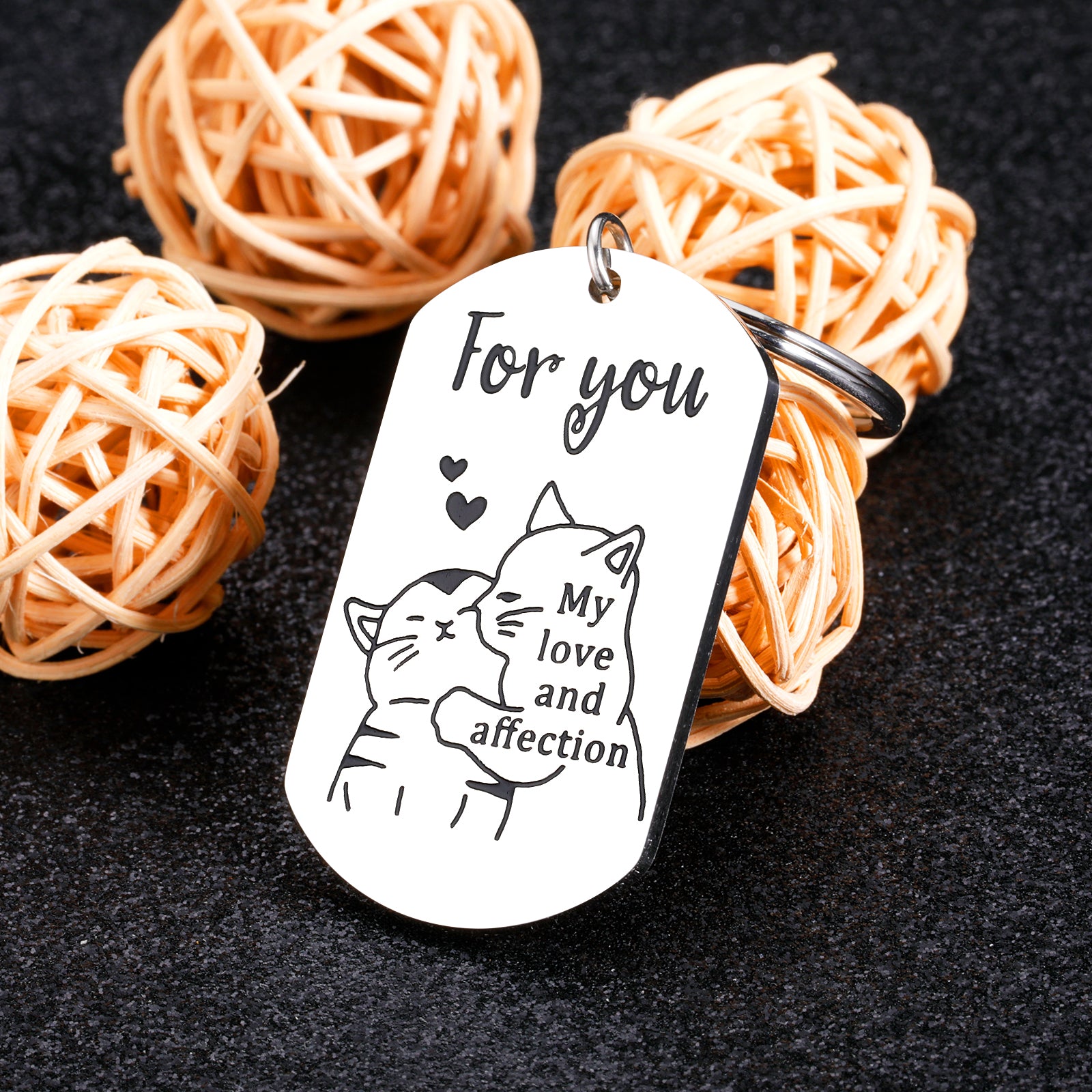 😽Cute gifts for Boyfriend Girlfriend--The cute gifts for boyfriend from girlfriend is perfect to show your love to the other half. With cute cats engraved and humor words "For you, my love and affection" on the keychain, meaningful gifts for boyfriend, girlfriend, husband, couples, wife, hubby, wifey, fiancée, fiancé, cat lovers, or pet lovers at birthday, anniversary, valentines, engagement, promise gift or special day gift between each other.