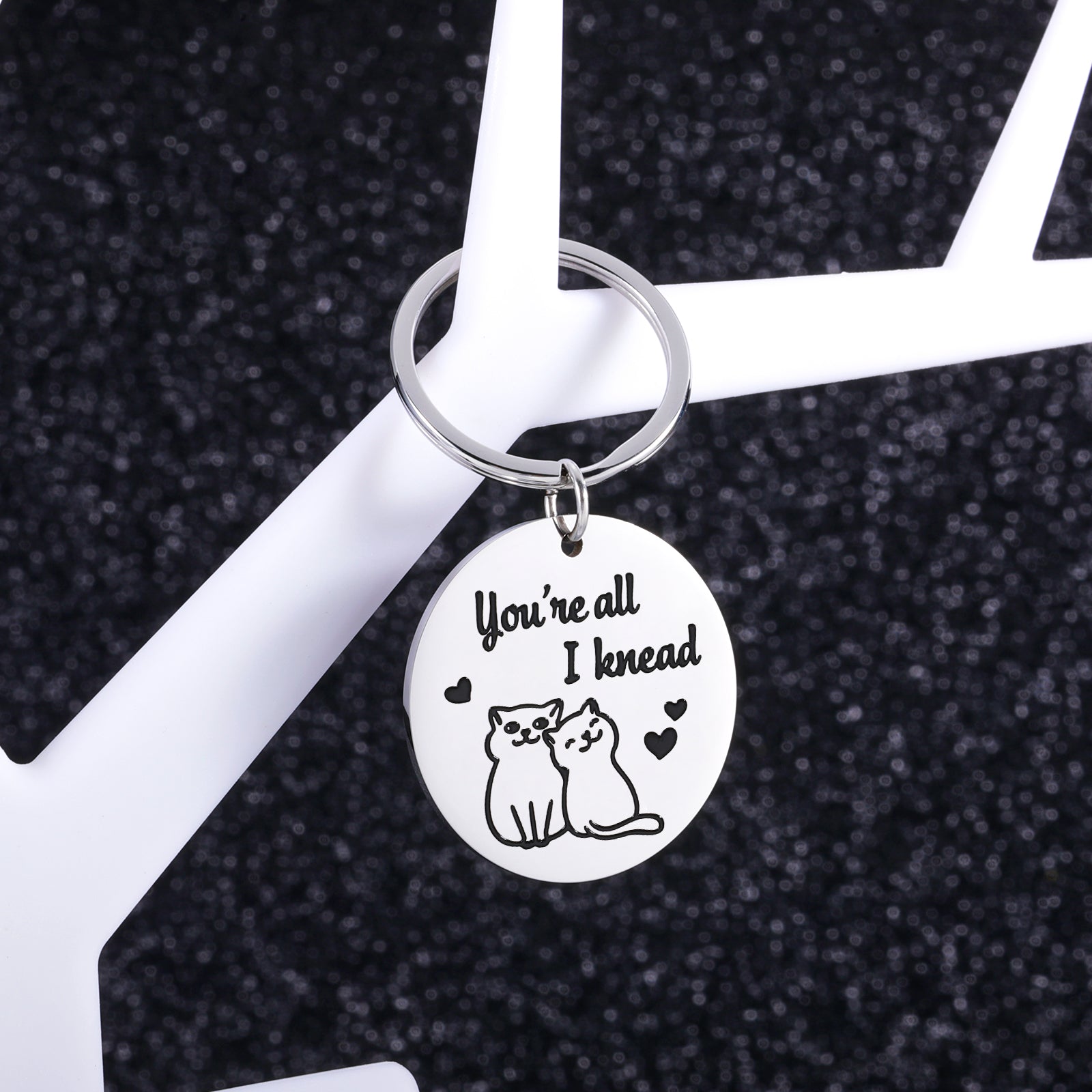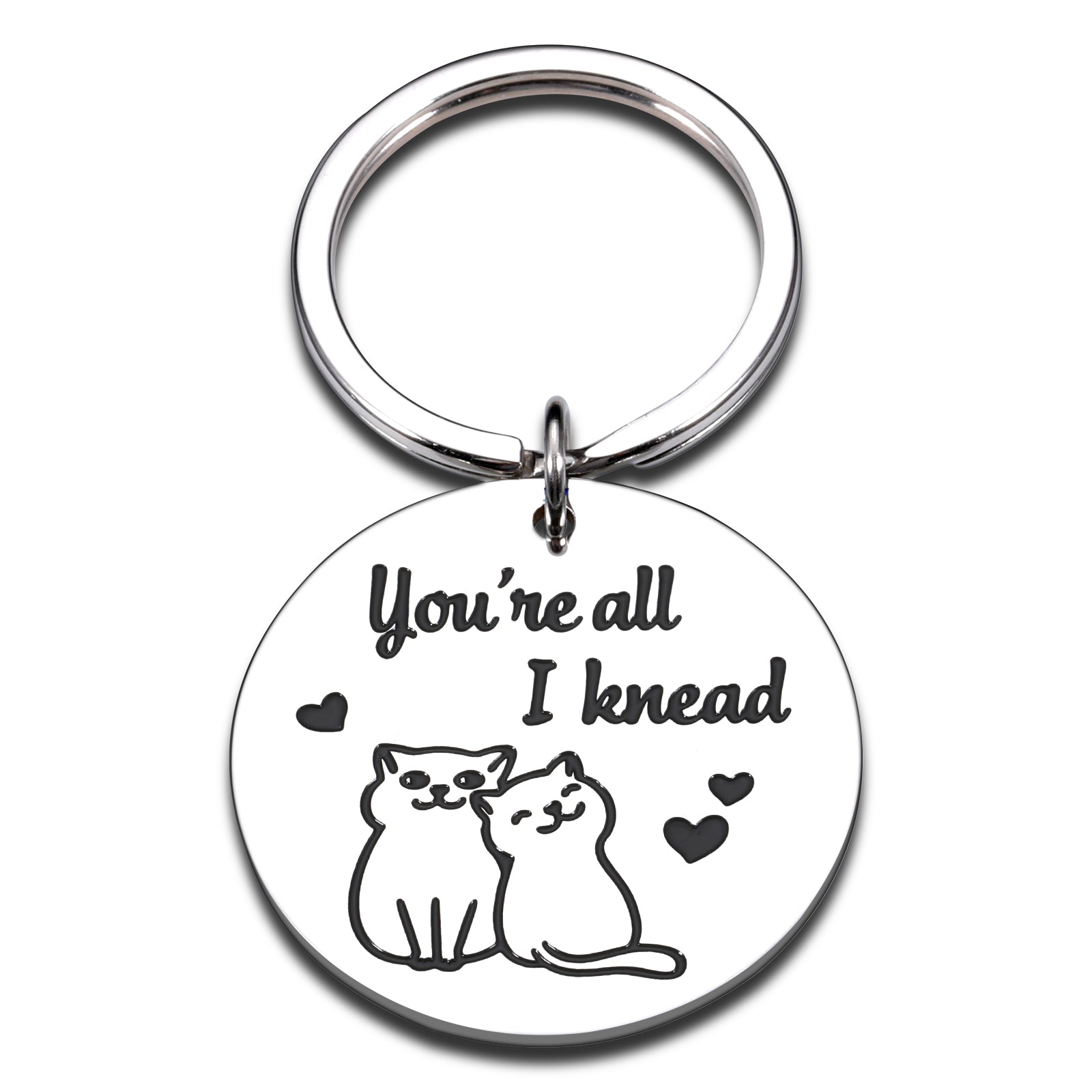 - 😽Cute gifts for Boyfriend Girlfriend--The cute gifts for boyfriend from girlfriend is perfect to show your love to the other half. With cute cats engraved and humor words "You're all I knead" on the keychain, meaningful gifts for boyfriend, boyfriend valentines day, great gifts for girlfriend, date night gifts for husband wife hubby wifey fiancée fiancé cat lovers or pet lovers at birthday, anniversary, valentines, engagement, white elephant or special day gift between each other.