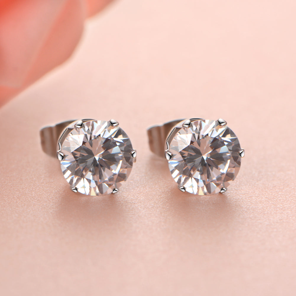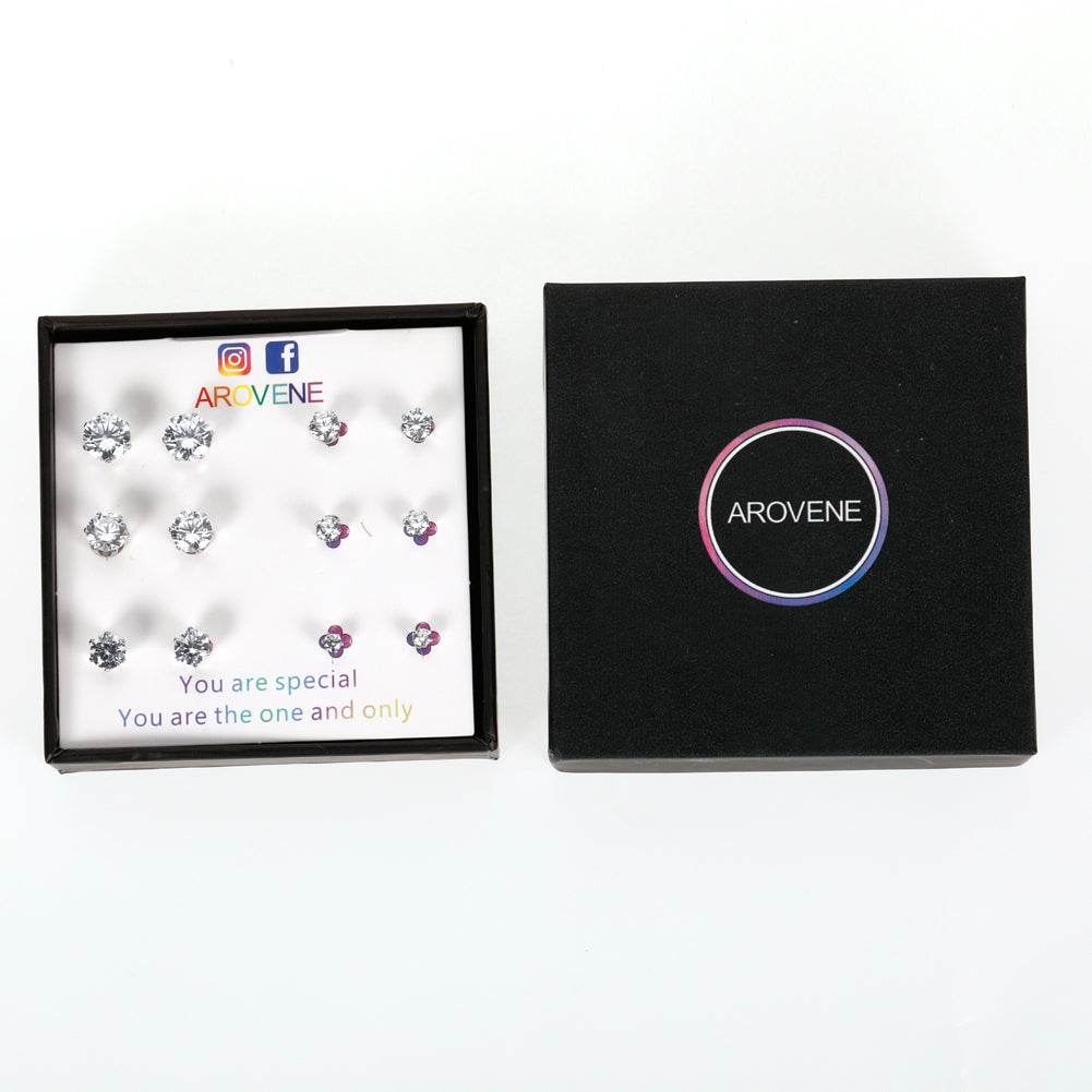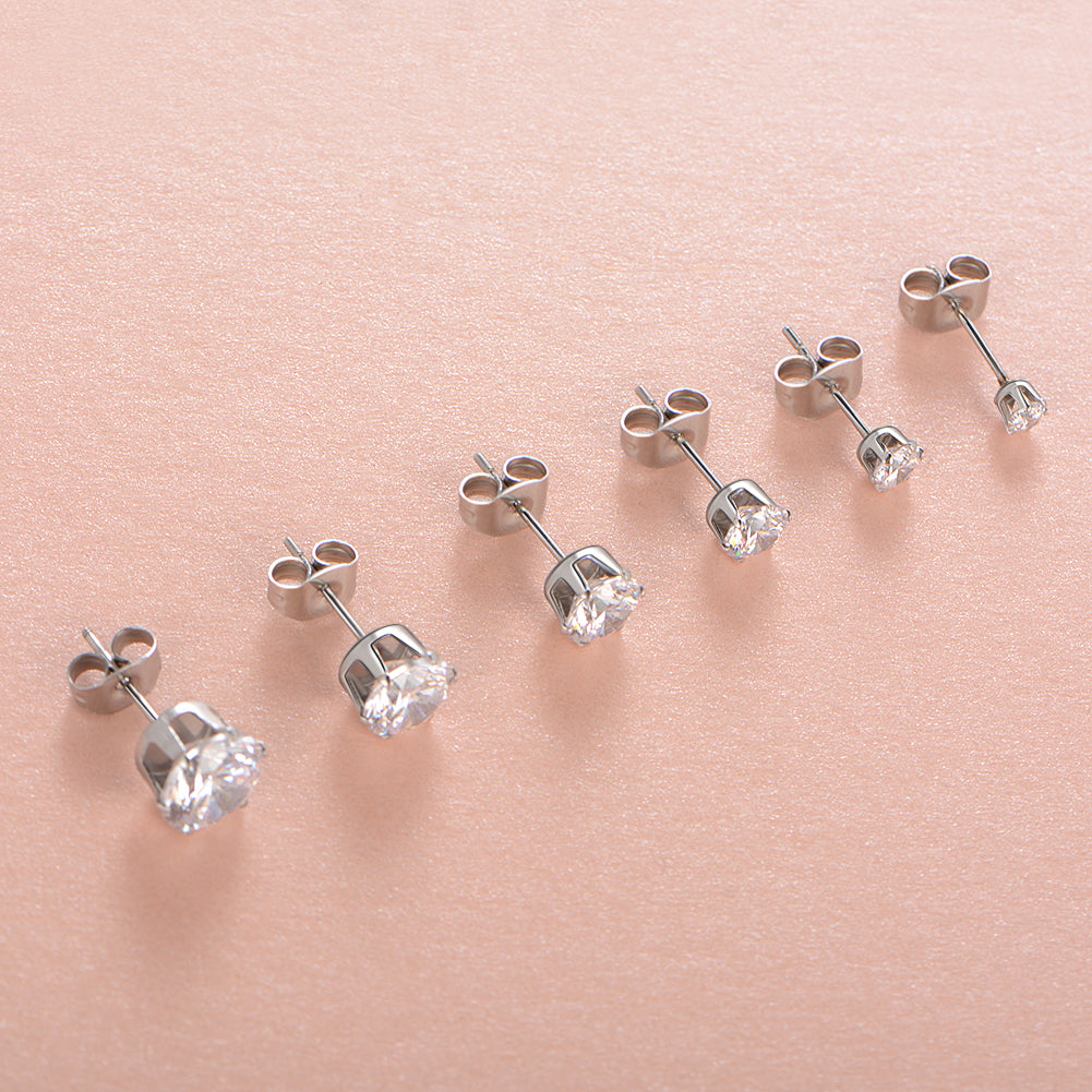 Jewelry Women's Stainless Steel Round Clear Cubic Zirconia Stud Earring (6 Pairs)