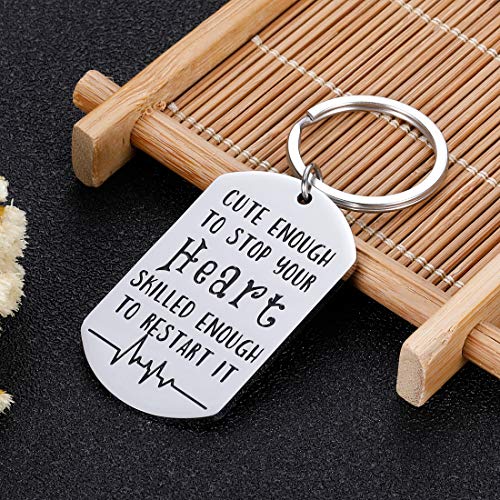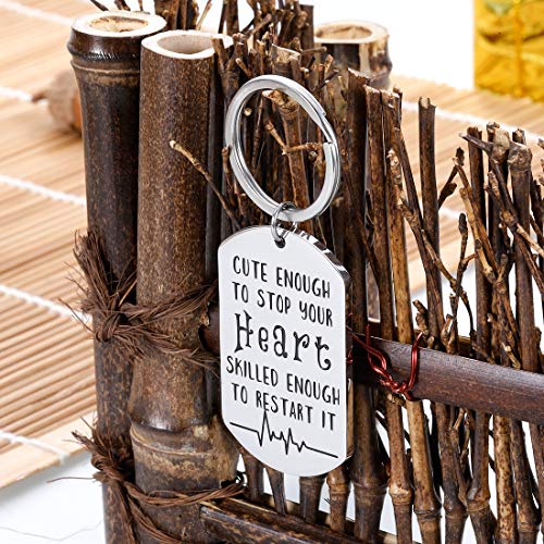 ☀Nurse Keychain : This Key Chain engraved with a wonderful & Funny quotes " Cute Enough to Stop Your Heart, Skilled Enough to Restart ", a keychain designed specifically for nurses.