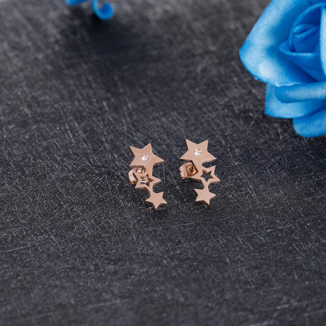 my story is just beginning Star Cubic Zirconia Stainless Steel Stud Earring, Christmas Gift for Women Minimalist Lucky Star Dainty Rose Gold Tiny Earring Christmas Jewelry