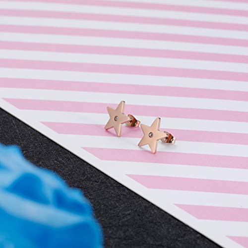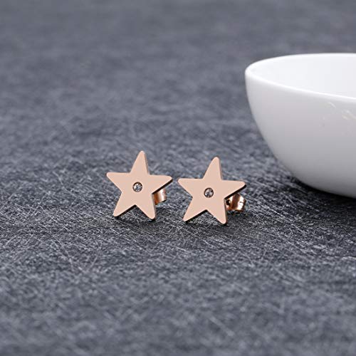 • ★Star Stud Earring: Made of rose gold tone plated stainless steel earrings, shiny cubic zirconia diamond inlaid. Hypoallergenic and study, give you a comfortable wear feeling.