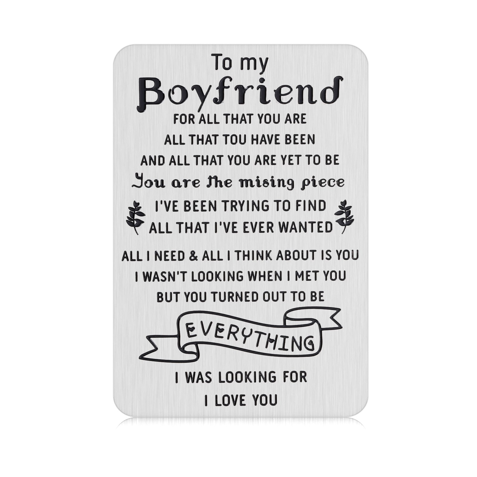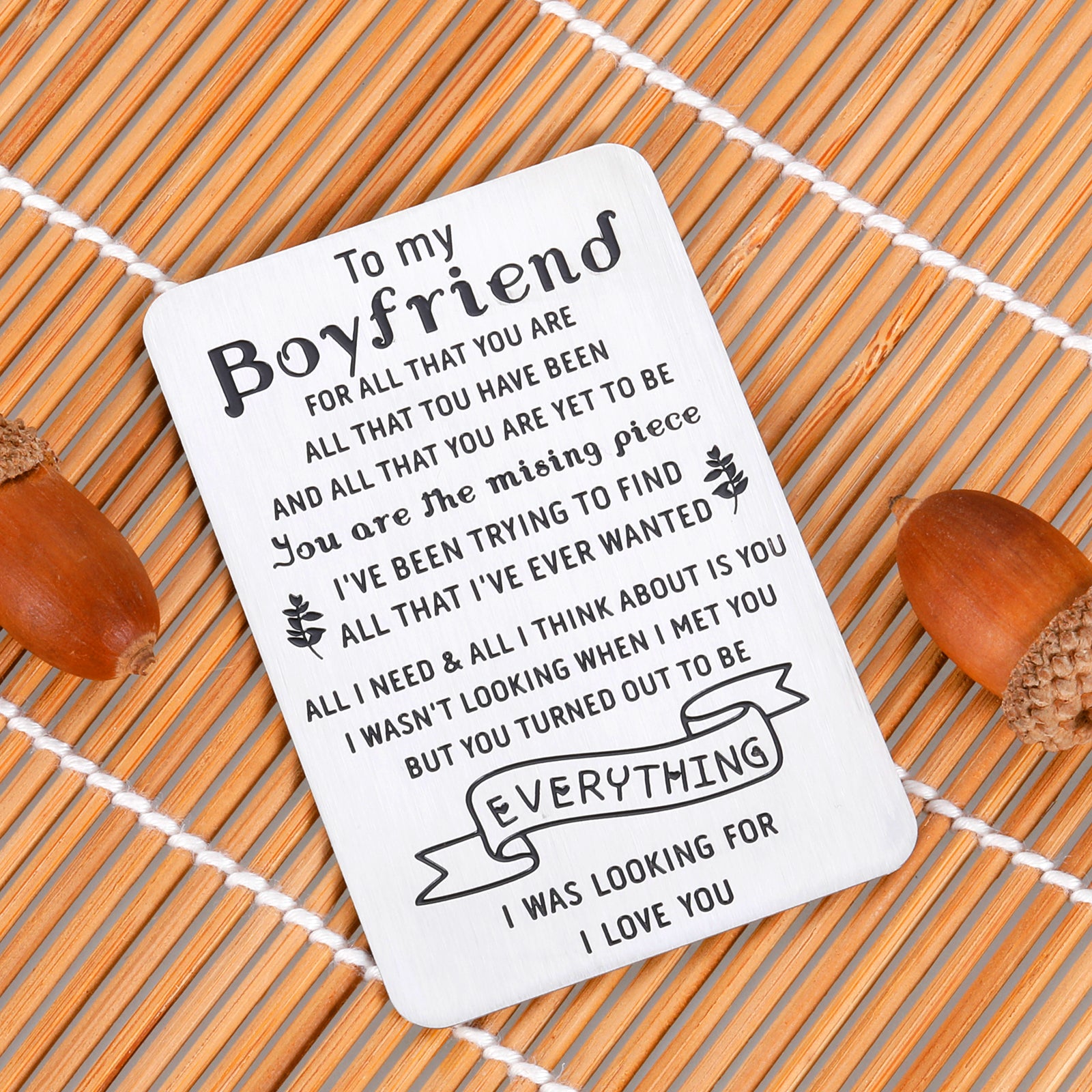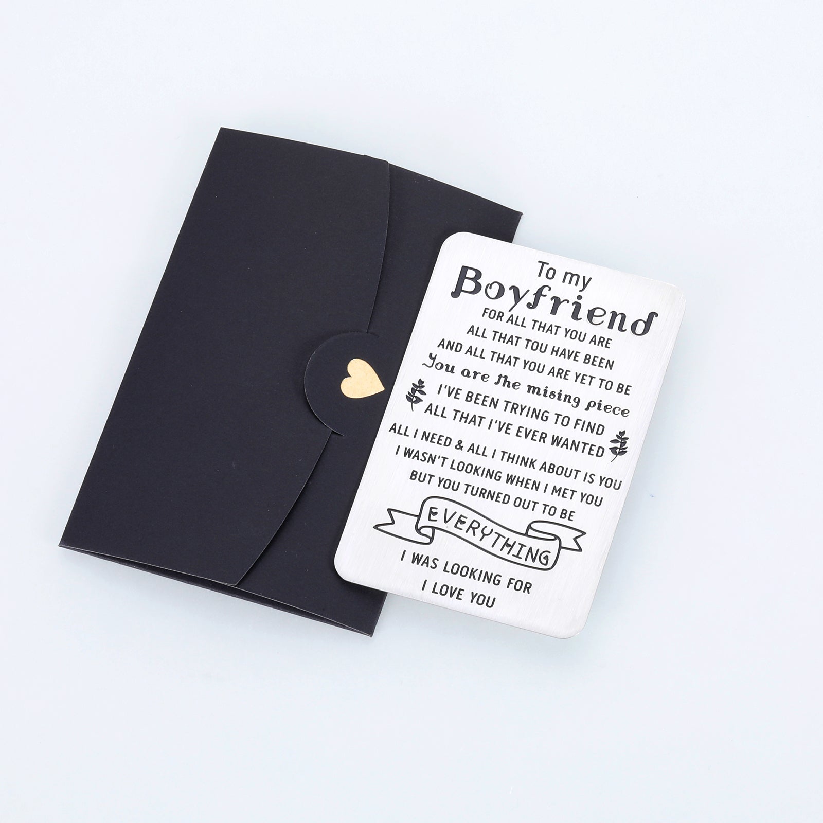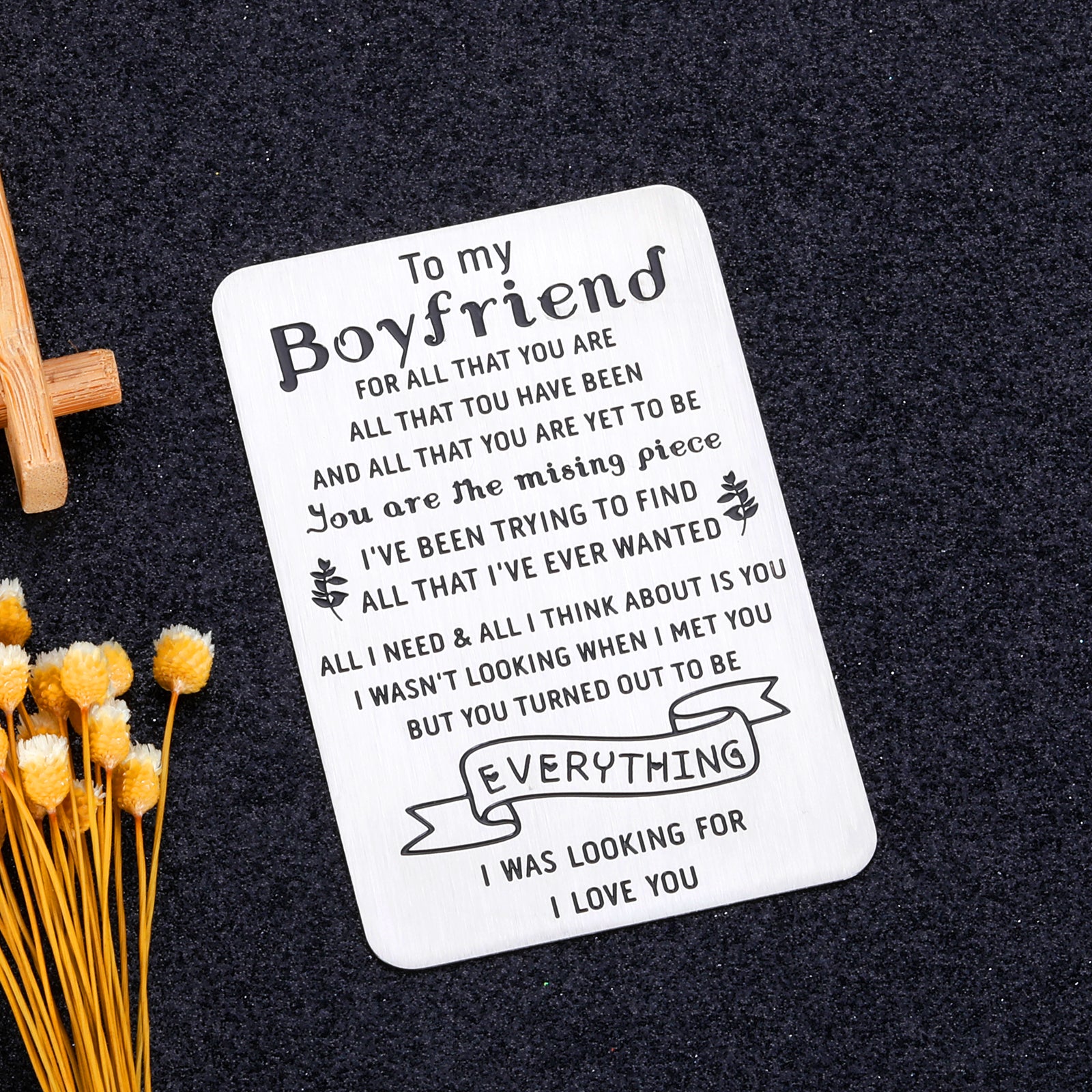 Sweet Boyfriend Wallet Card Gift - For all that you are, all that you have been, all that you are yet to be, you are the mising piece. I’ve been trying to find all that I’ve ever wanted. All I need & all I think about is you. I wasn’t looking when Imet you. But you turned out to me everything I was looking for. I love you. A gifts with sweet quote words for him.