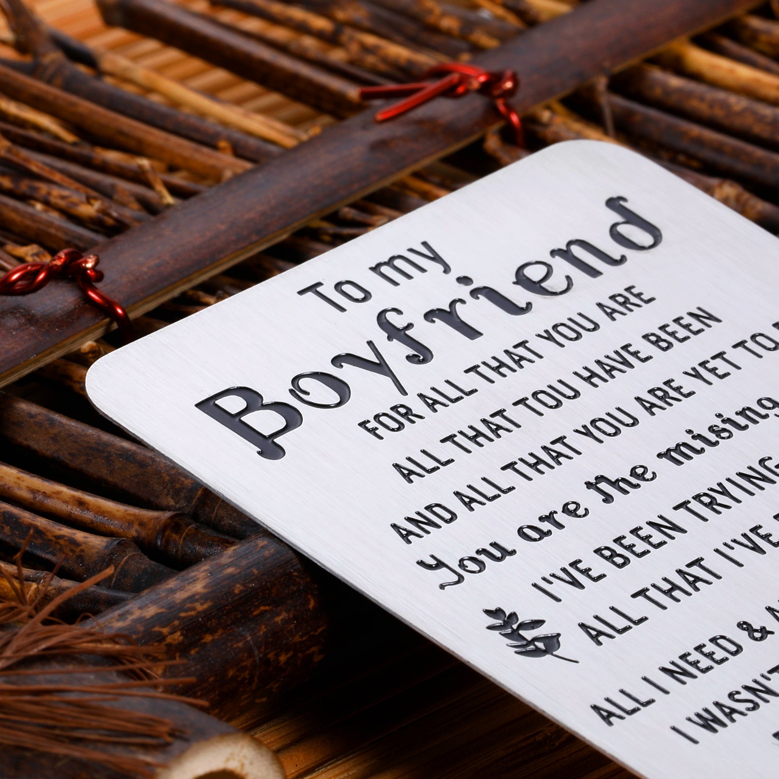 Birthday Christmas Gift Idea for Him - This wallet card insert is a useful and meaningful gift for you BF boyfriend, your man, lover, soul partner, future husband, husband to be, fiancé, bridegroom. It is a boyfriend thank you gift, appreciation gift to say I Love You.