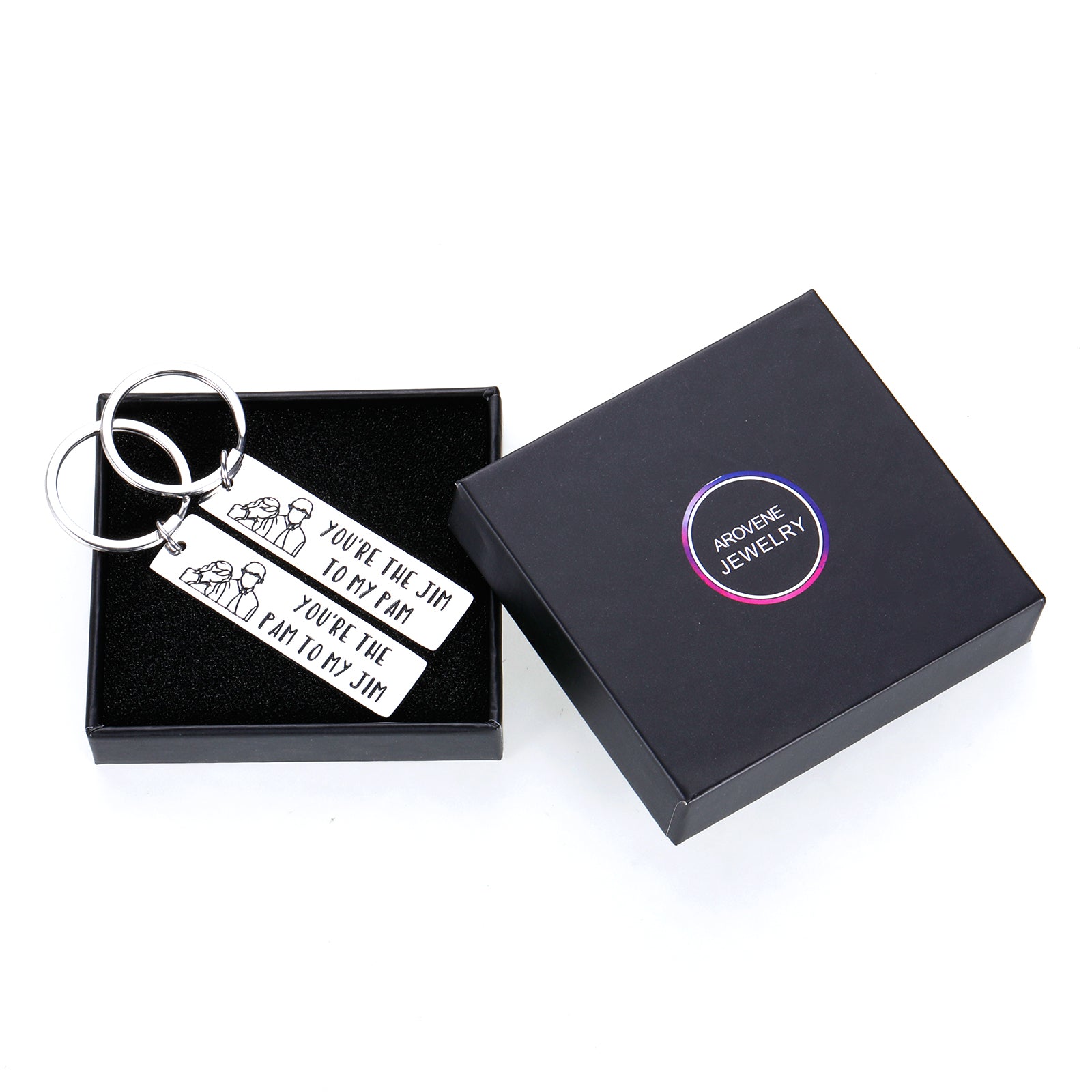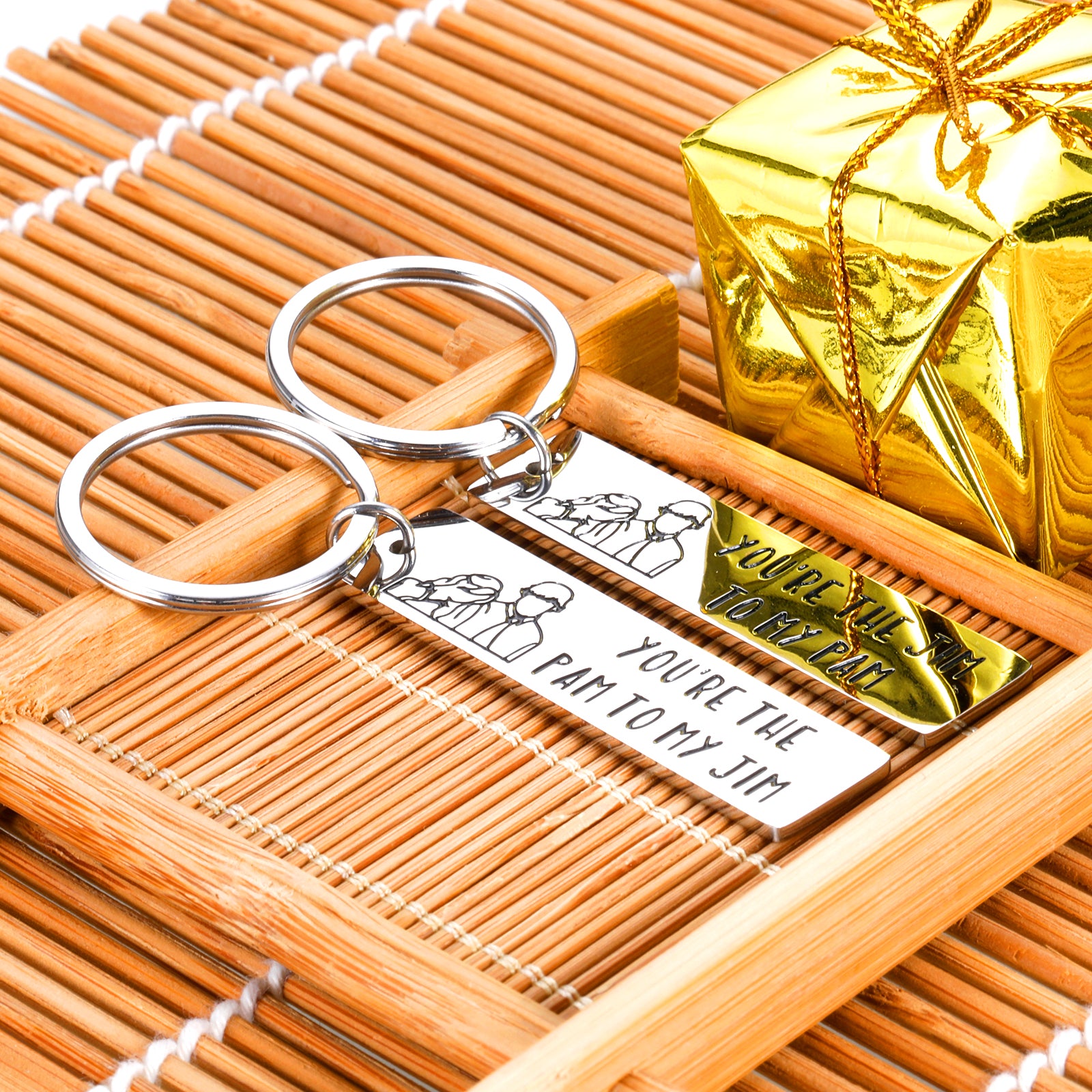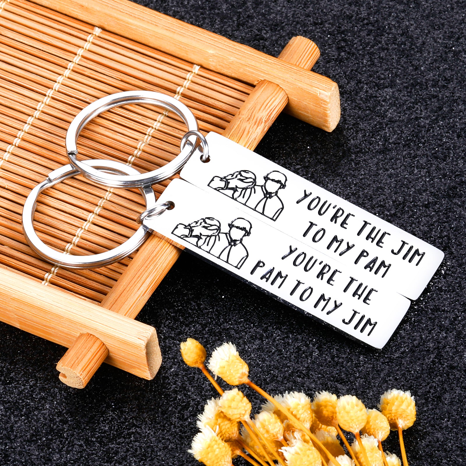 - The Office Key Chains - This cute keychain set inspired by the love story of Jim and Pam from "The Office" and featuring "You're the Jim to my Pam/You're the Pam to my Jim" is a great gift for a couple. Let you and your lover write a beautiful love story together.