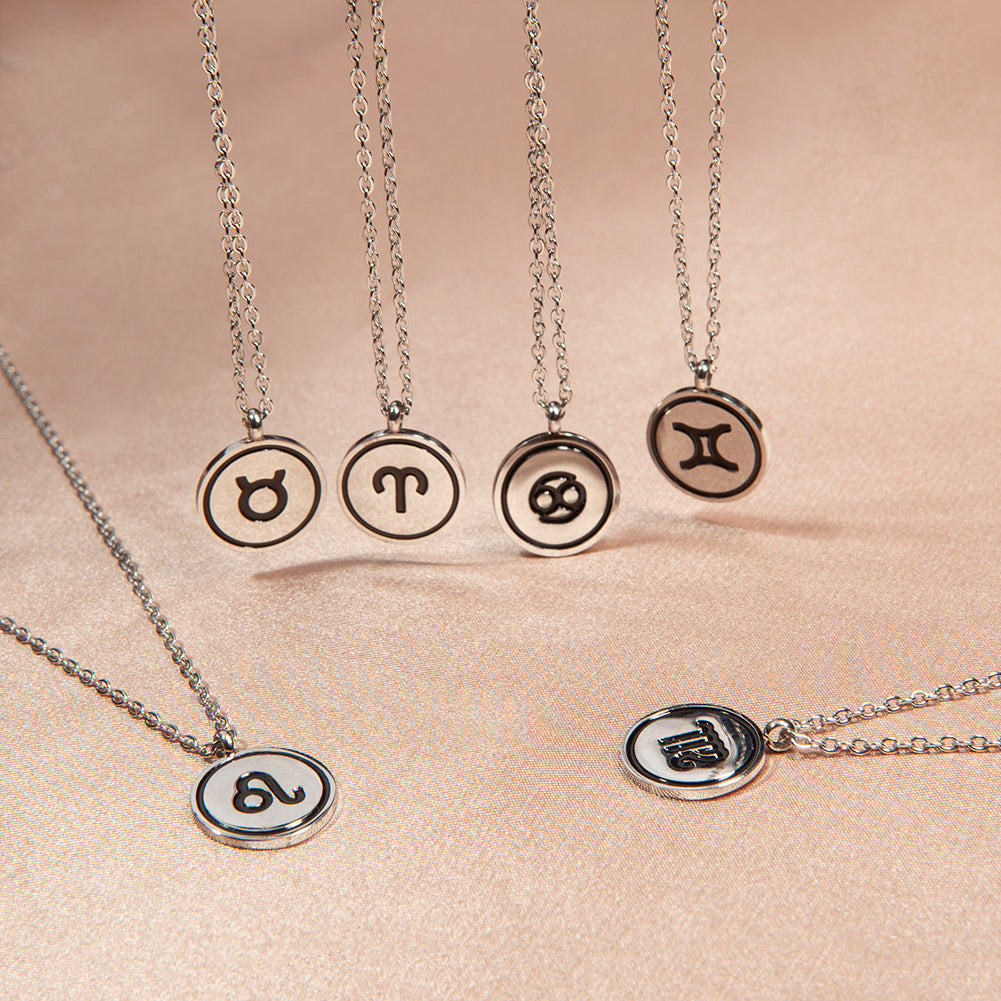 Exquisite : zodiac sign necklace for unique you. A small and dainty zodiac charm hangs on a stainless steel chain making a simple but elegant statement. A perfect layering piece or minimalist necklace.