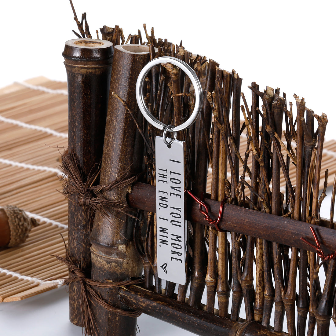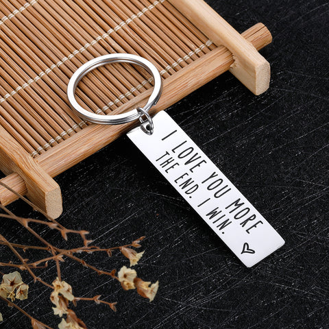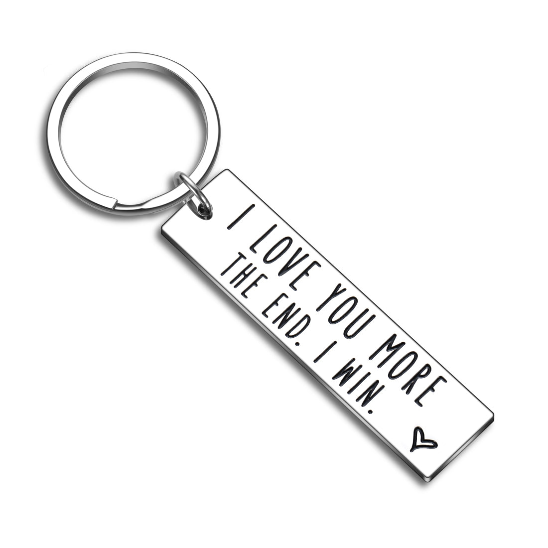 • ☄Anniversary Gift Keychain: Engraved “I Love You More The End. I Win. ” message keychain, pretty gift for husband wife girlfriend boyfriend. It is surprise gift to make her/him happy.